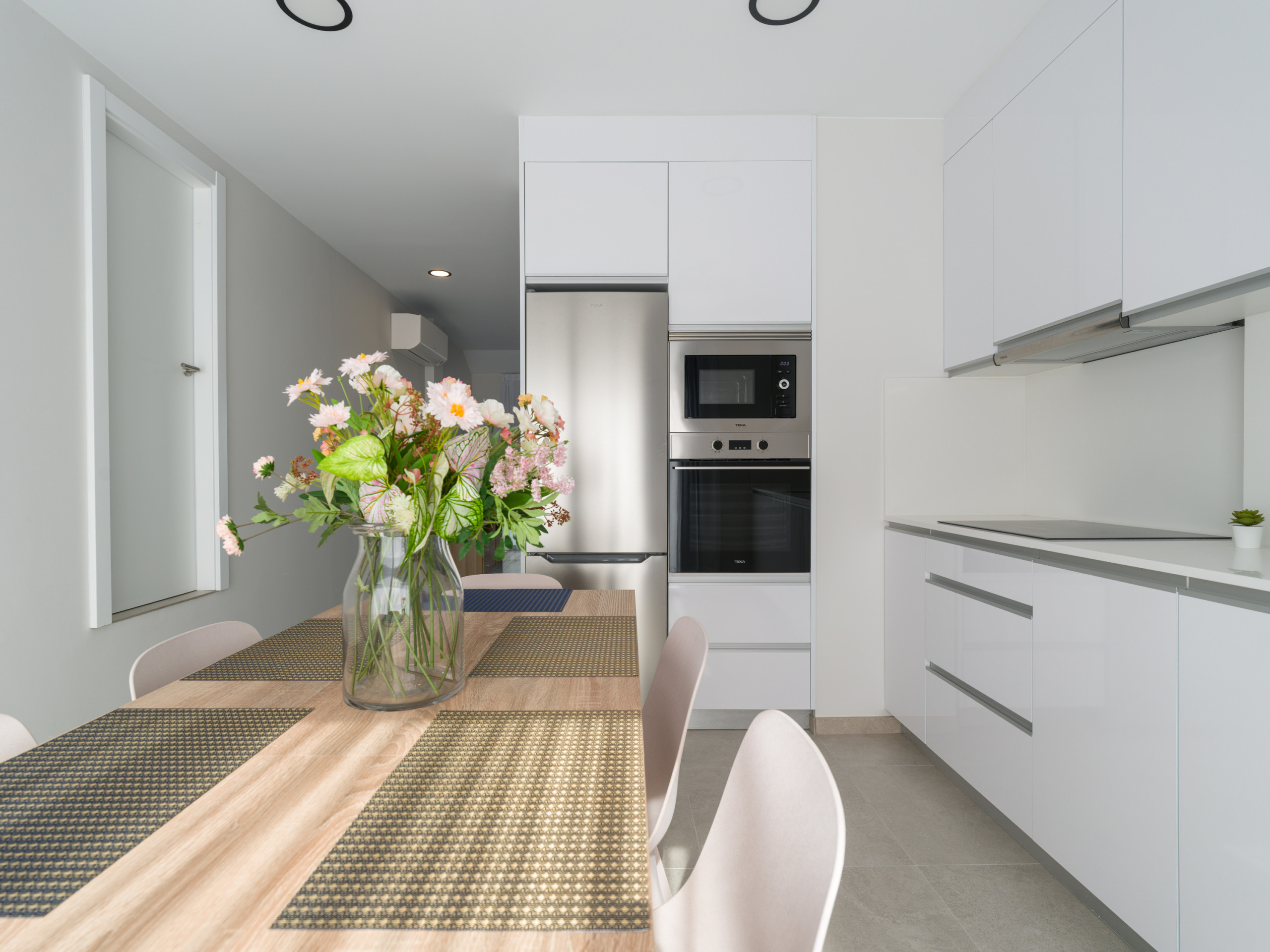 Der Salon ist gemütlich und verfügt über eine Essecke, eine Couch zum Entspannen und Klimaanlage im Salon, zusätzlich zur Wärmepumpe, die das ganze Jahr über eine perfekte Temperatur gewährleistet. Es gibt einen Smart-TV mit Satellitenkanälen, High-Speed-WLAN und er ist so konzipiert, dass er mit elektronischen Geräten vollständig kompatibel ist.