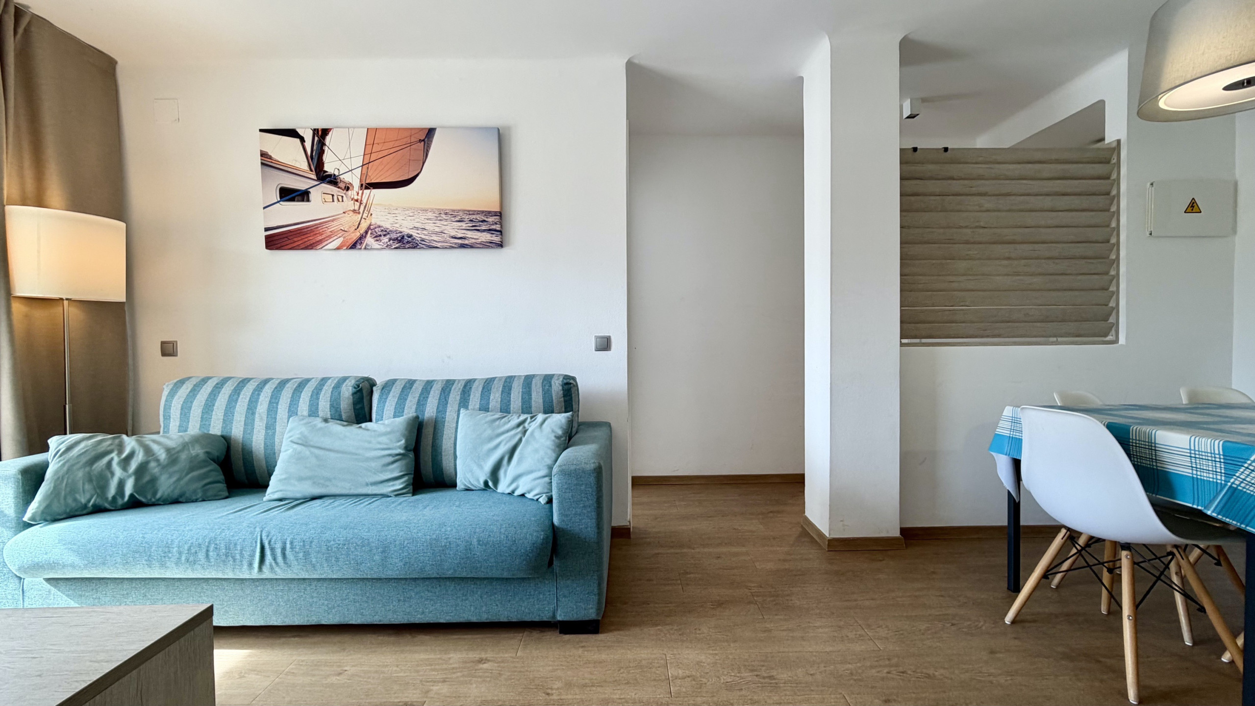 Die 5 Schlafplätze umfassen 1 Schlafsofa und 4 Einzelbetten und bieten Flexibilität für Familien mit Kindern. Die Wohnung ist mit Klimaanlage und Wärmepumpe ausgestattet, um Komfort zu jeder Jahreszeit zu gewährleisten.