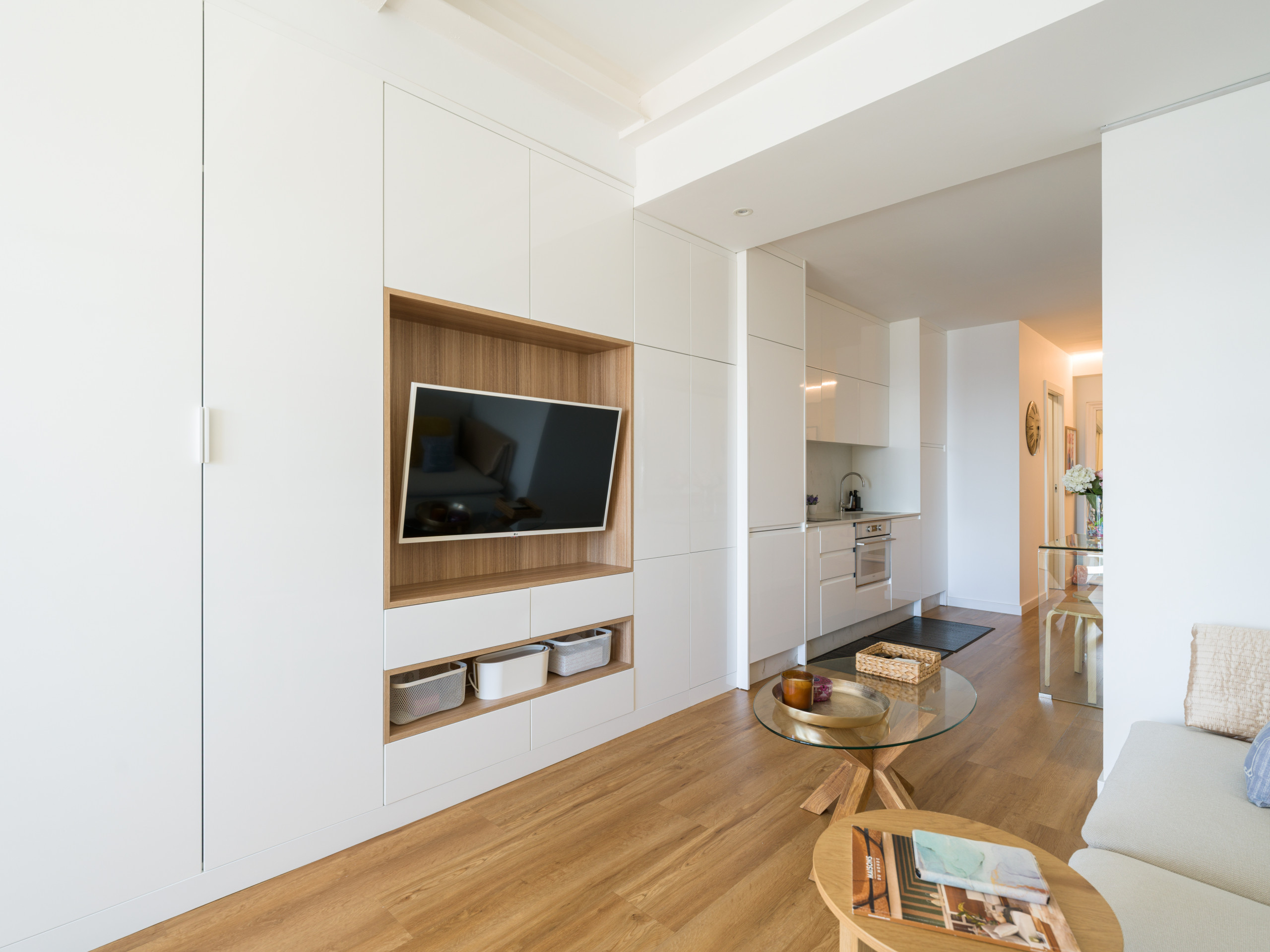 Die amerikanische Küche ist komplett mit modernsten Haushaltsgeräten ausgestattet, einschließlich Waschmaschine, Trockner, Backofen, Mikrowelle und Kaffeemaschine. Perfekt zum Zubereiten schneller Mahlzeiten oder zum Genießen eines intimen kulinarischen Abends.