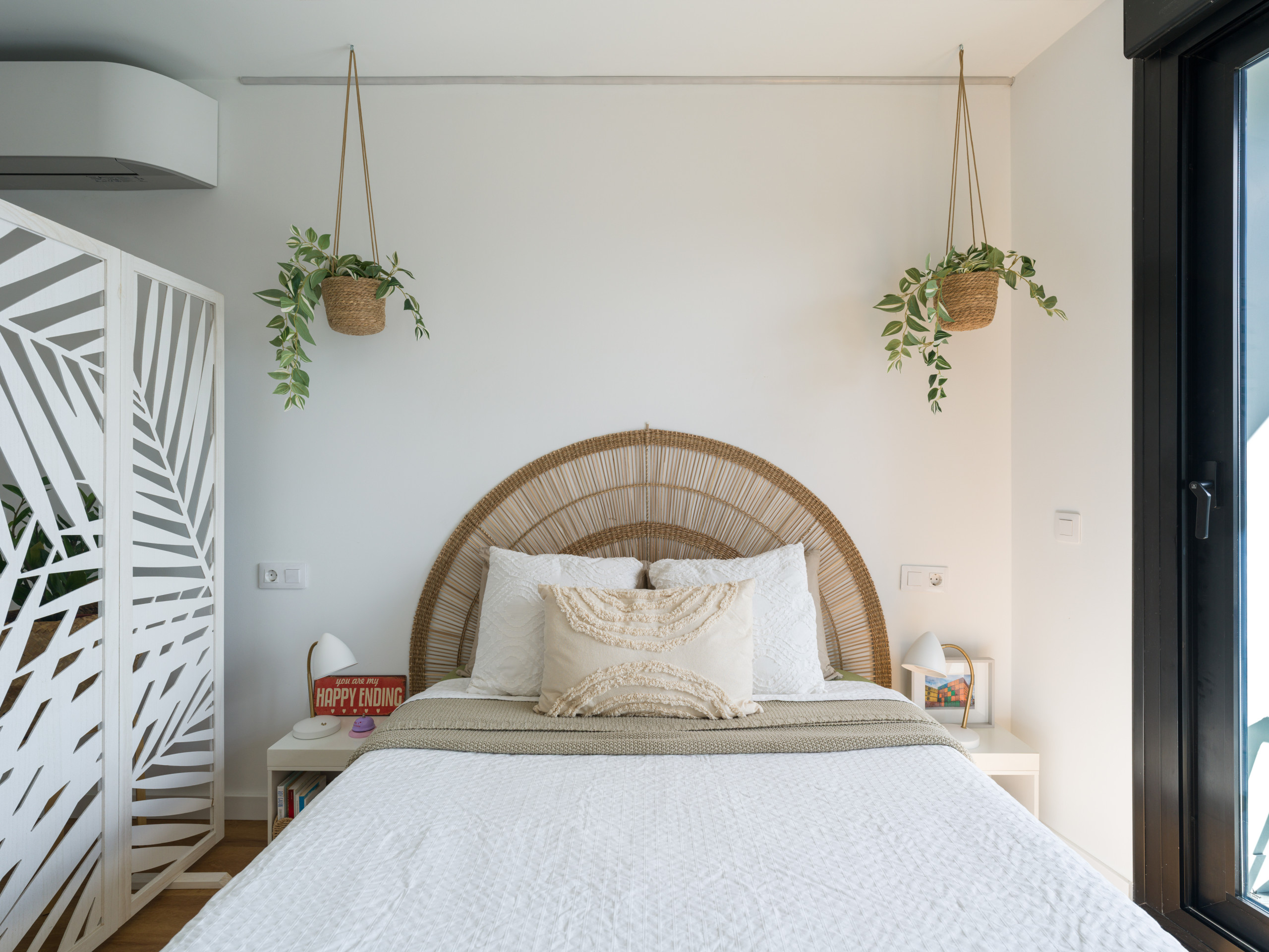 Der Raum verfügt über ein Hauptschlafzimmer mit einem Doppelbett (1,35 Meter breit) und einer Pillow-Top-Matratze, die eine erholsame Nachtruhe gewährleistet. Die sorgfältig ausgewählte Dekoration schafft eine elegante und entspannende Atmosphäre, ideal für diejenigen, die Design und Komfort schätzen.