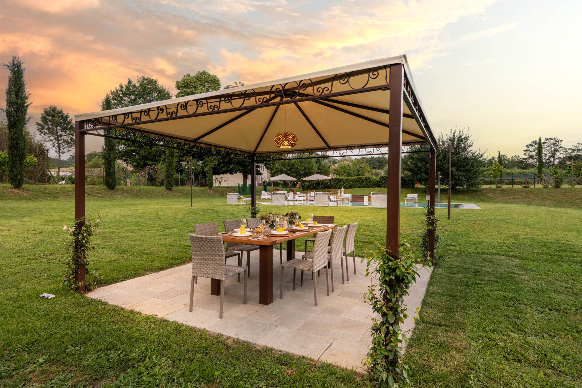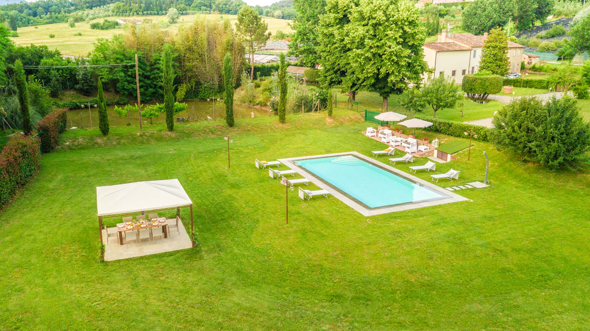 Es gibt keine bessere Art, den Tag zu beginnen, als den Kaffee im Garten zu genießen, wobei nur das Zwitschern der Vögel die Ruhe stört. Verbringen Sie amüsante Abendessen am Esstisch des Gewächshauses, der auch ideal für Kochkurse oder Pizzapartys ist. Obwohl ein ideales Nest für einen ruhigen Rückzug, gibt es viele Städte, die man in leichten Tagesausflügen entdecken kann, wie Florenz, Pisa, Siena, San Gimignano, Volterra, Pistoia und Cinque Terre, wobei Lucca nur fünfzehn Minuten entfernt ist. Für Familien mit Kindern empfehlen wir einen Stopp im Pinocchio-Park, der nicht weit entfernt ist.