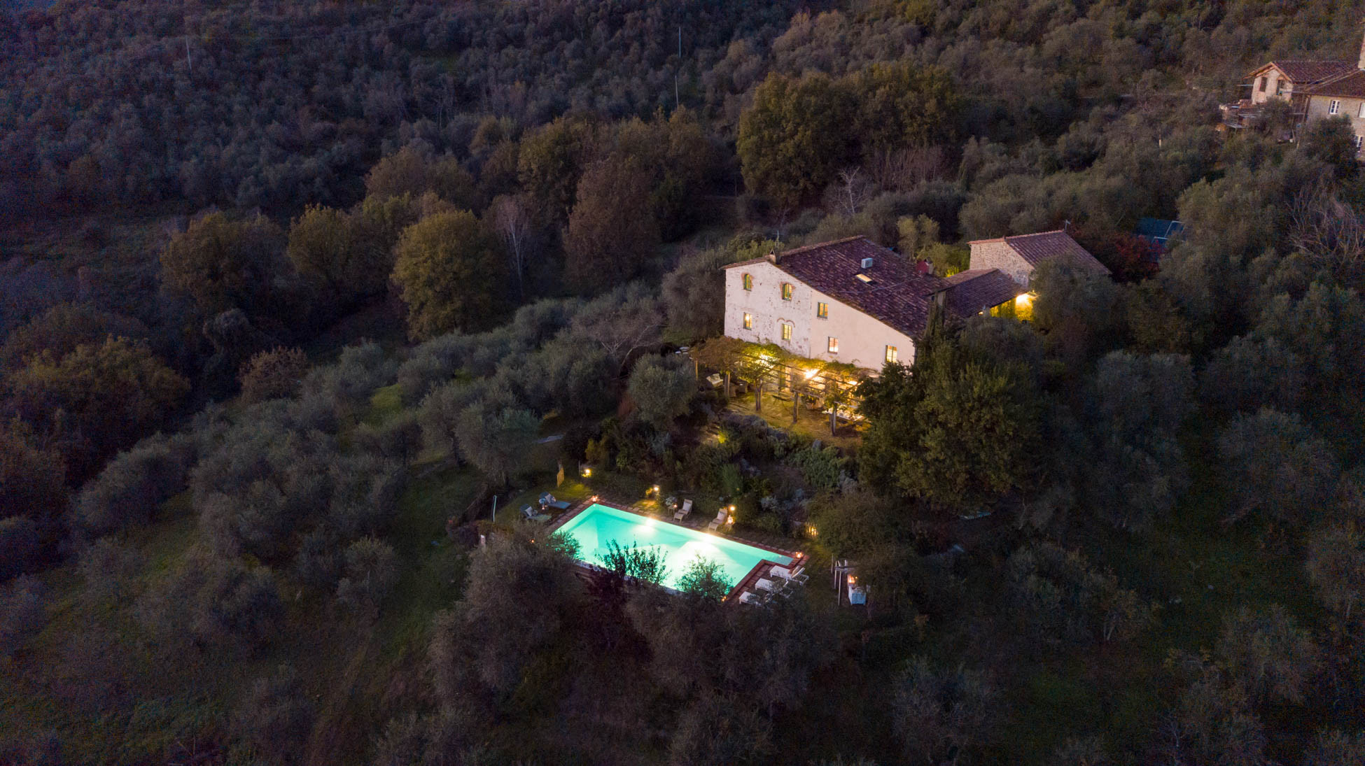 The house is fantastic, it is completely secluded and quiet in the mountains. The house is perfectly equipped and furnished with love. Not a typical holiday home where everything is just thrown together. Nothing was missing. The beds are super comfortable. The pool is huge with a perfect view. The tennis court is in very good condition. There was even a vegetable patch that you were allowed to help yourself to. There is a small supermarket within 15 minutes. The centre of Lucca is about 30 minutes away. Day trips to PisaFlorence are very feasible.