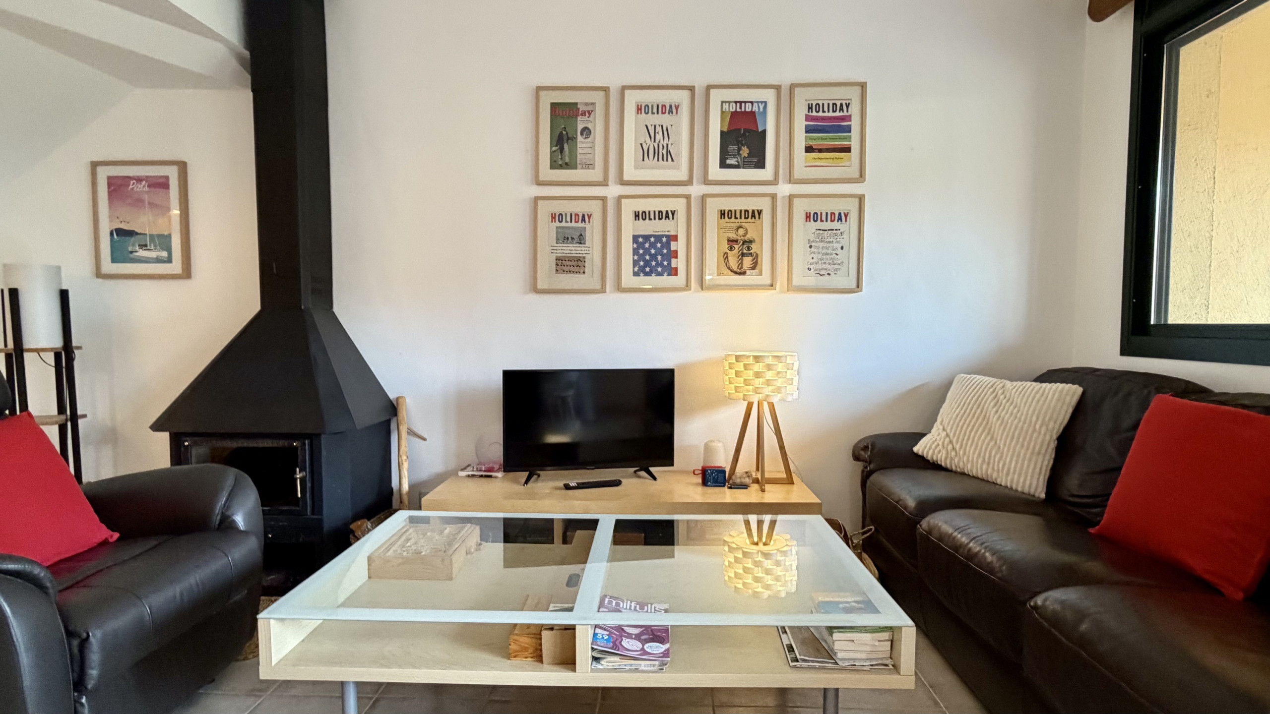 Het interieur valt op door zijn functionaliteit en comfort. De open keuken is volledig uitgerust met de nieuwste generatie huishoudelijke apparaten, inclusief koelkast, oven, magnetron, vaatwasser en koffiezetapparaat. Bovendien beschikt het over een open haard voor koudere avonden, een strijkplank en twee televisies voor gezamenlijk entertainment. Het beschikt NIET over een wasmachine.