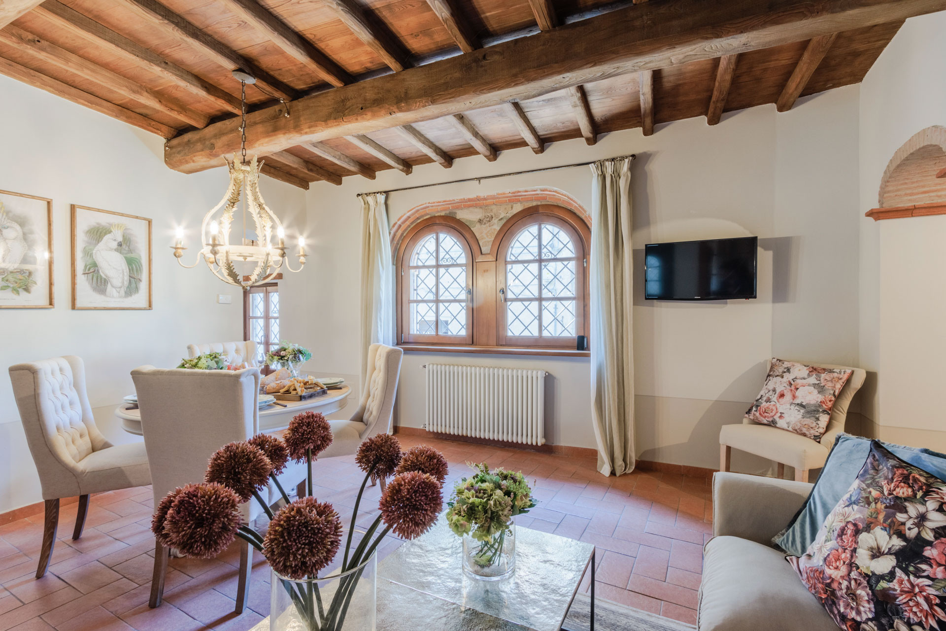 The villa is in a very local, fairytale-kind of locations. The views to the mountains are just stunning day and night, and you’re surrounded by families only. Very quiet, with an amazing atmosphere of Tuscany. The Villa is clean, all the acs are work