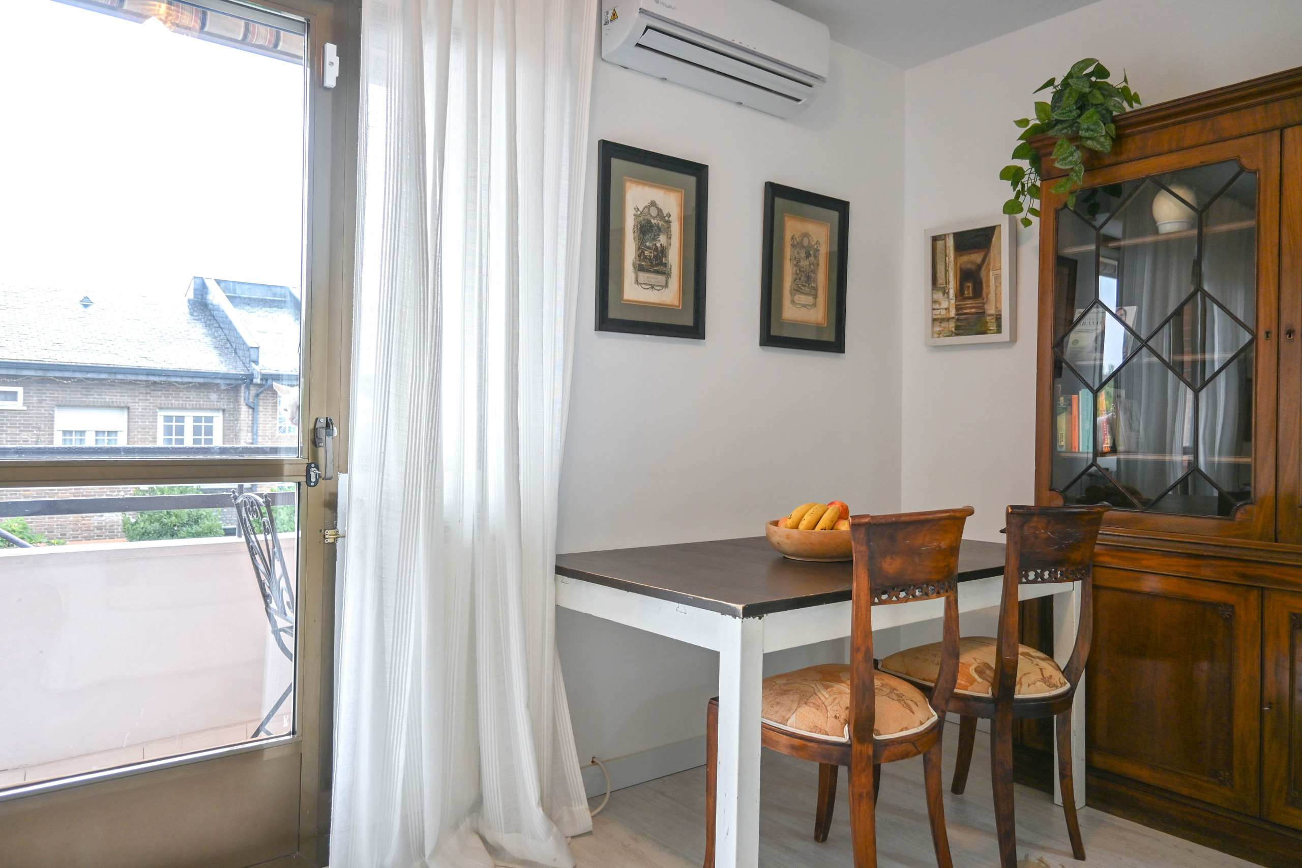 Piso de alquiler Temporal.Este encantador apartamento en Alcobendas, ubicado en una casa de tres plantas, ofrece una experiencia de vida única y confortable. Accediendo a la propiedad, se encuentra una escalera a la izquierda que lleva a la tercera planta, donde comienza la magia de este hogar. Al llegar, se descubre una acogedora terraza en la entrada, equipada con una mesa perfecta para disfrutar de momentos al aire libre.