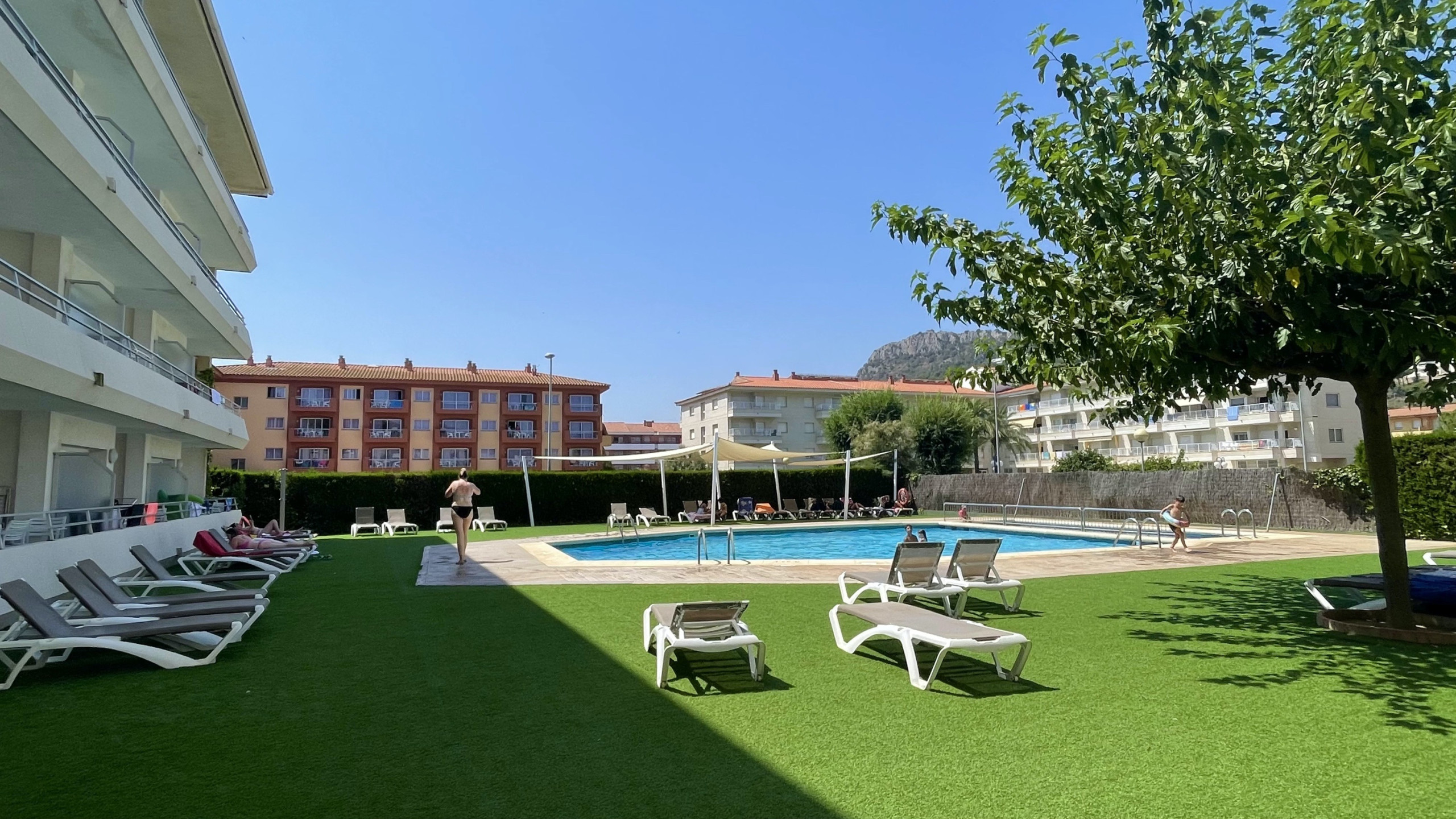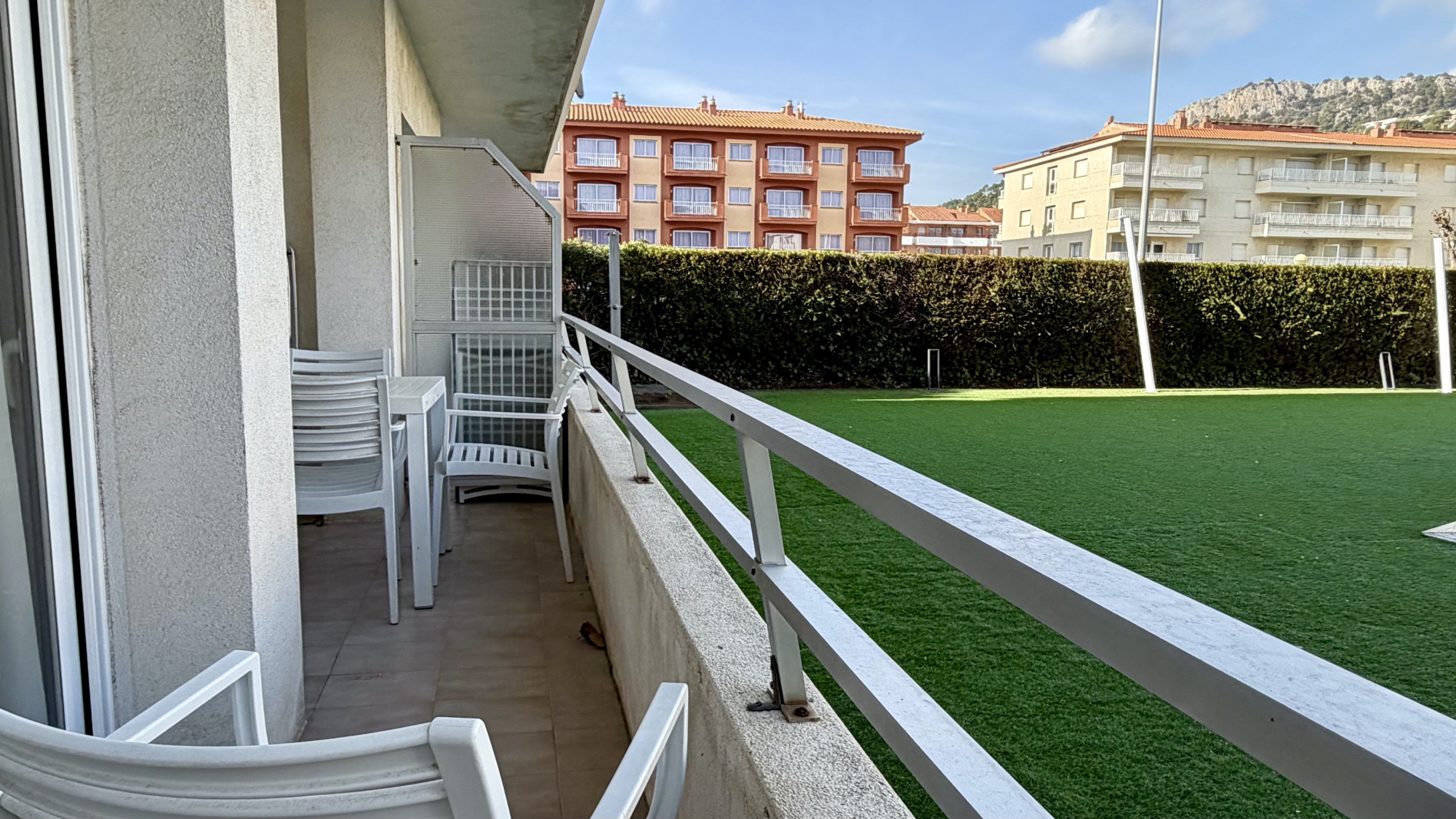 El apartamento cuenta con una terraza encantadora que te permitirá disfrutar de momentos tranquilos al aire libre. La piscina compartida es ideal para refrescantes momentos en los días calurosos, donde podrás relajarte y disfrutar del sol mediterráneo.