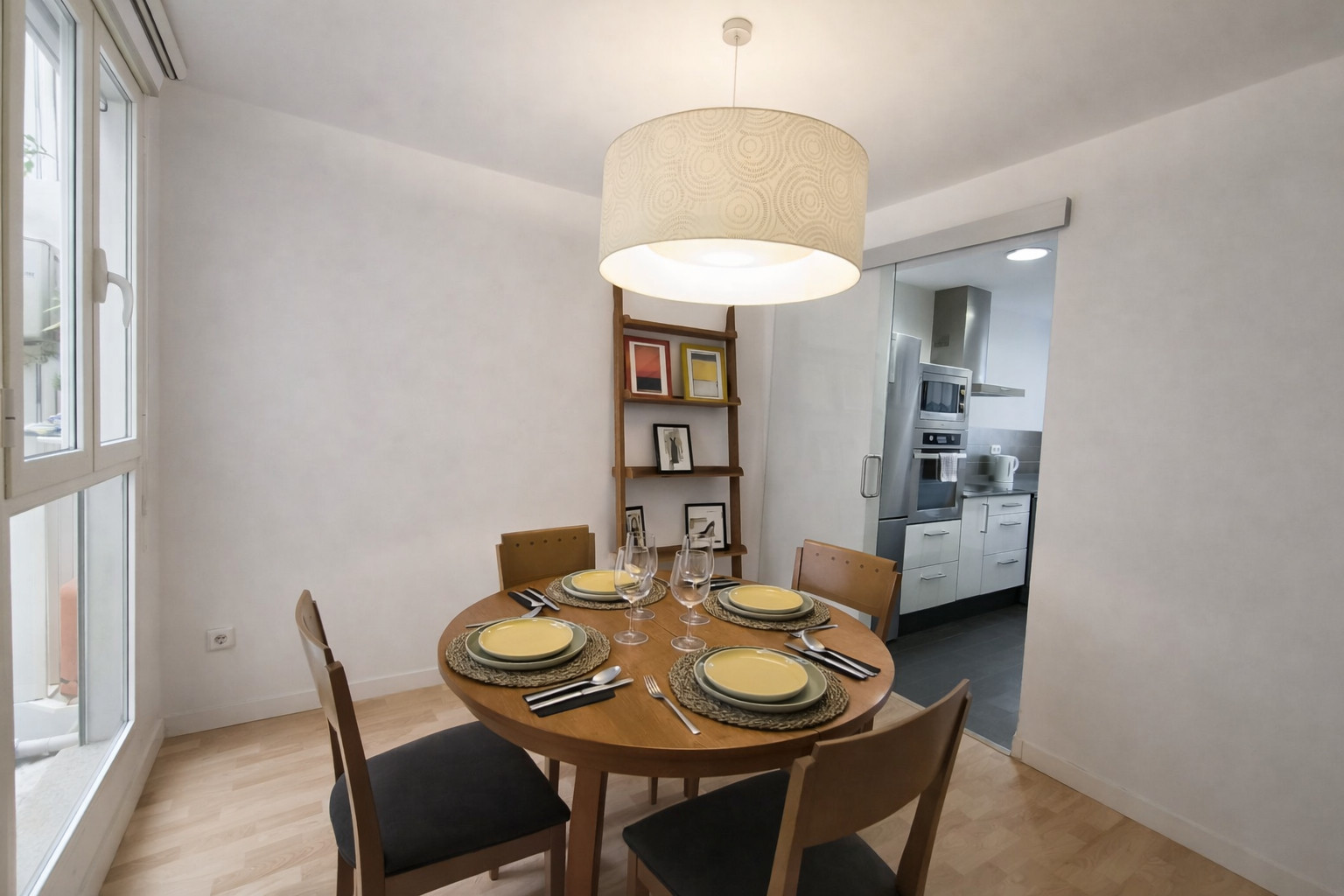 Cuenta con un salón-comedor luminoso, cocina totalmente equipada y todas las comodidades necesarias: Wi-Fi gratuito, aire acondicionado, calefacción y lavadora.