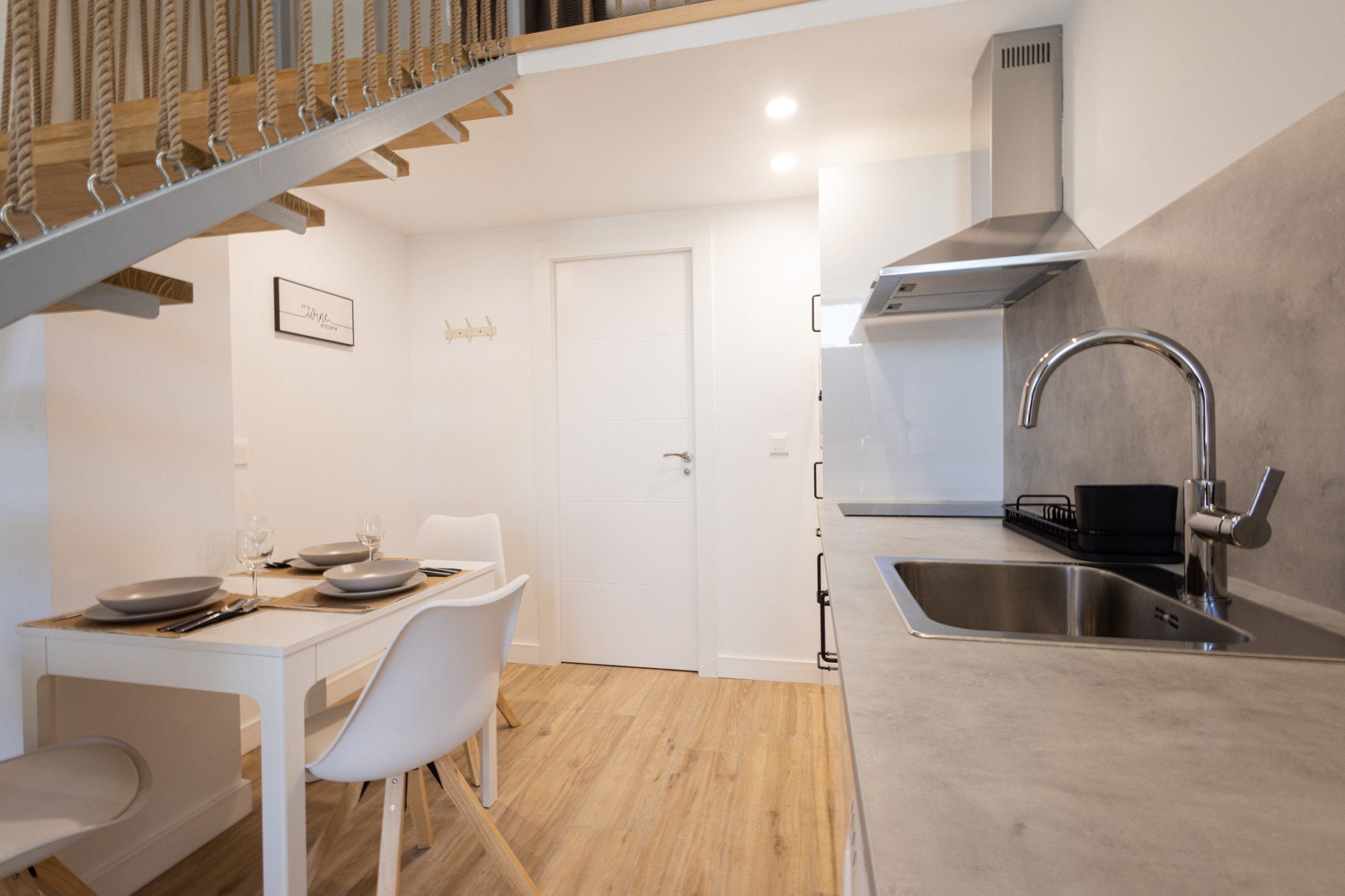 Al cruzar la puerta del apartamento, te recibirá una sala de estar luminosa con un sofá cama individual. La decoración está inspirada en un ambiente natural con toques minimalistas y detalles en madera que crean una atmósfera acogedora y relajante que te hará sentir como en casa desde el primer momento.