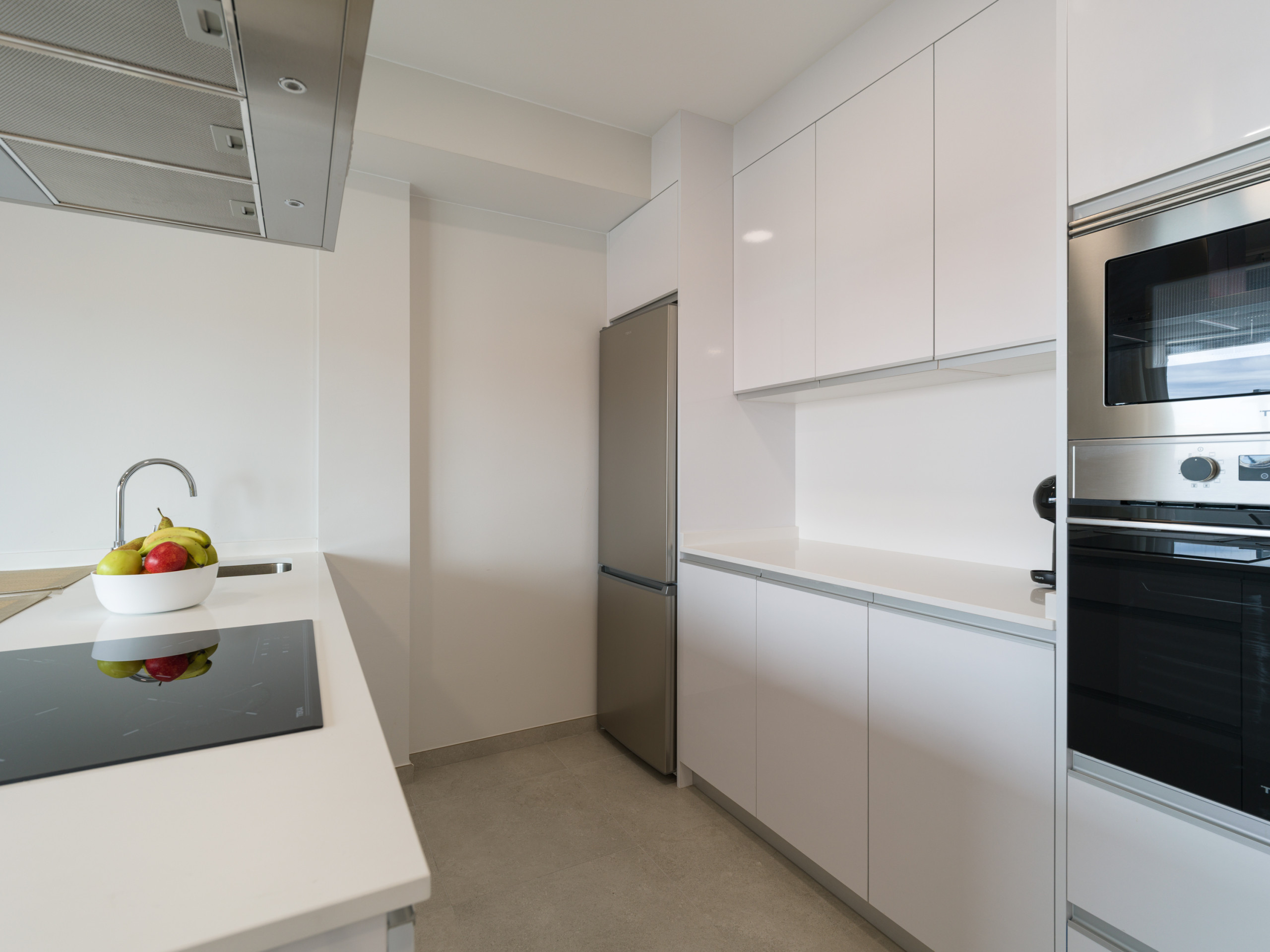 La cocina americana está completamente equipada con electrodomésticos de última generación, incluyendo lavadora, secadora, lavavajillas, horno, microondas, cafetera, tostadora, hervidor y exprimidor. Encontrarás todos los utensilios de cocina necesarios para preparar deliciosas comidas.