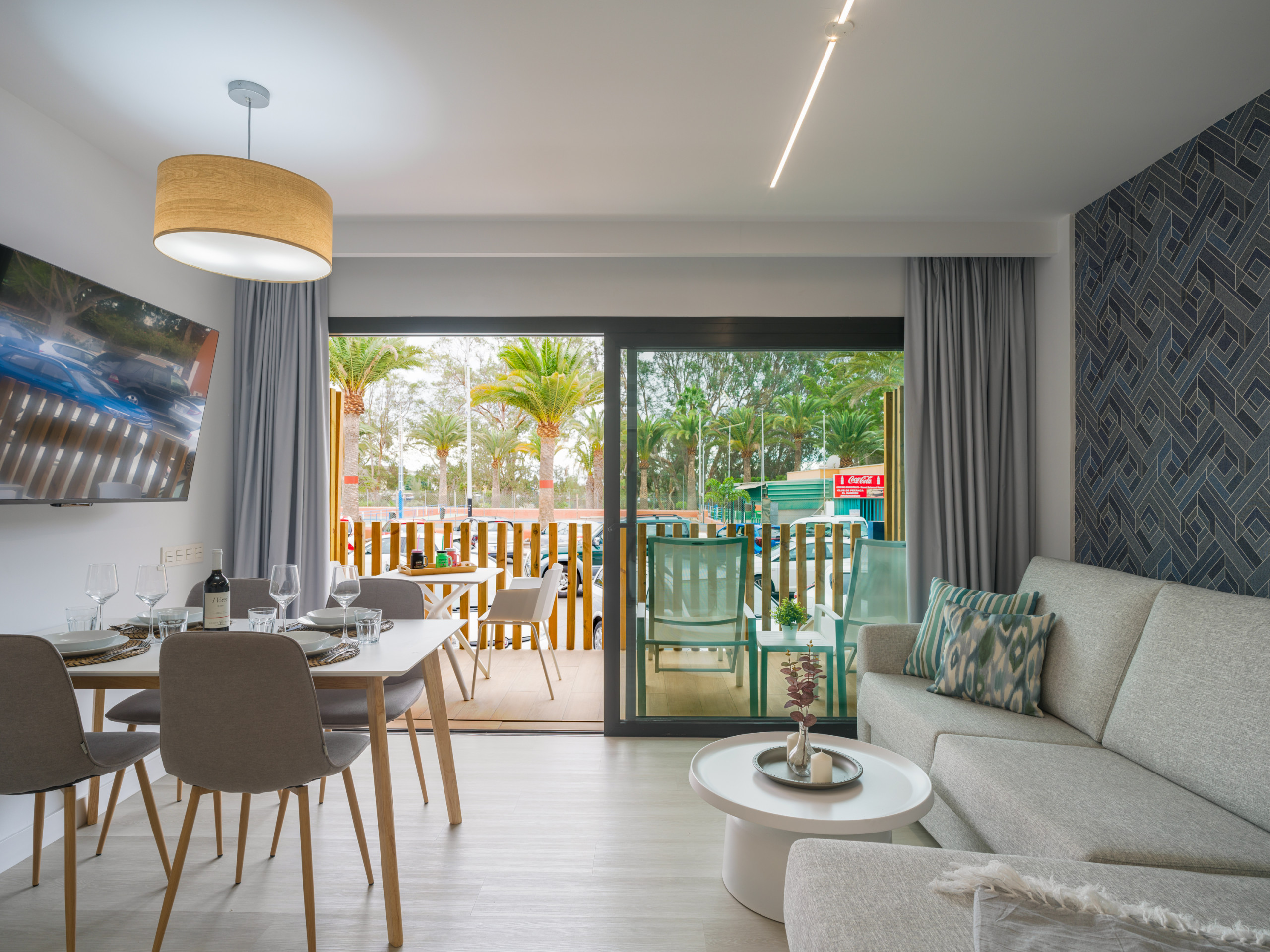 Las zonas comunes del complejo están pensadas para tu bienestar y relajación. Podrás disfrutar de un magnífico solárium, un jacuzzi ideal para desconectar y un gimnasio completamente equipado para mantenerte en forma durante tus vacaciones.