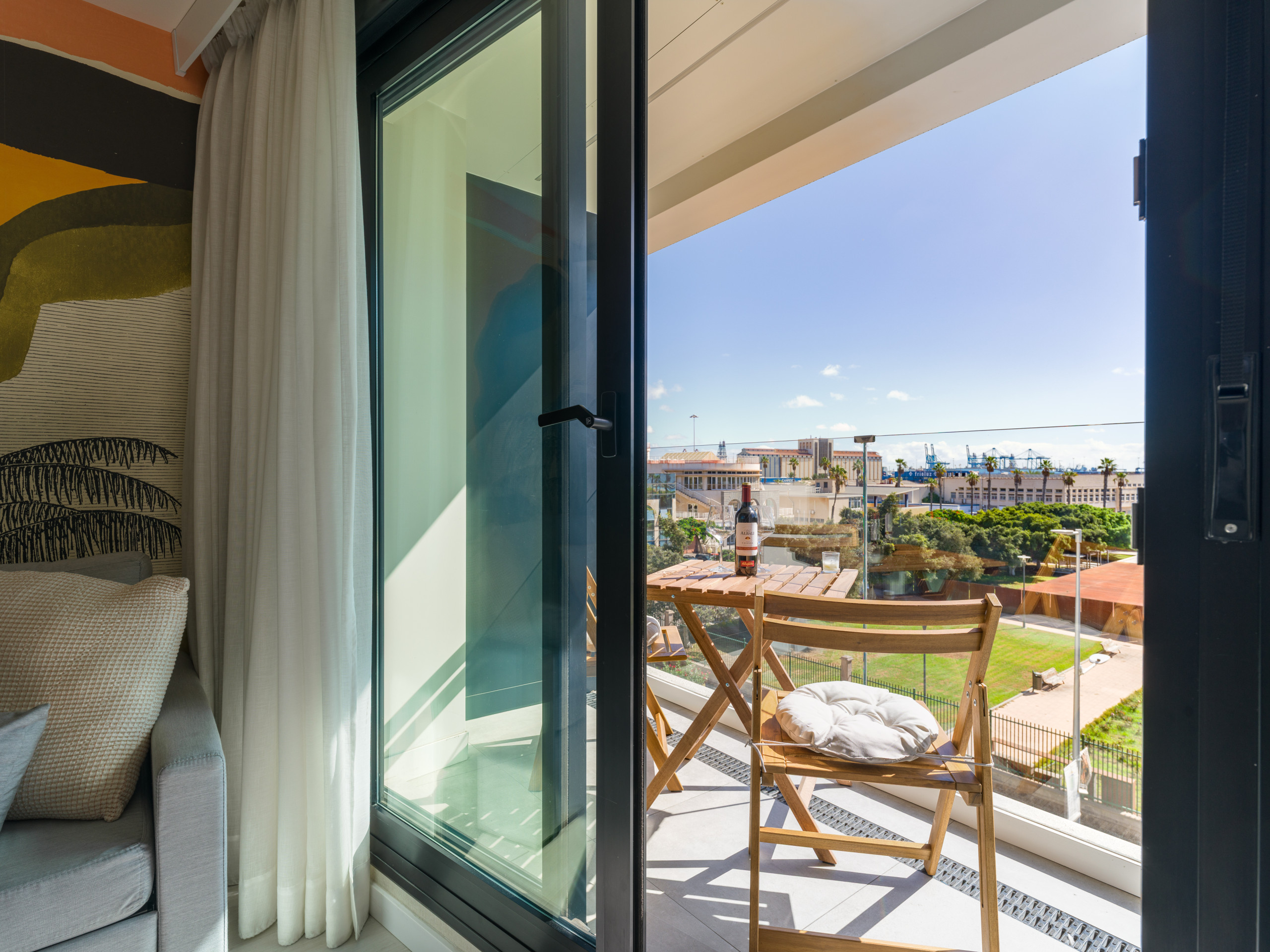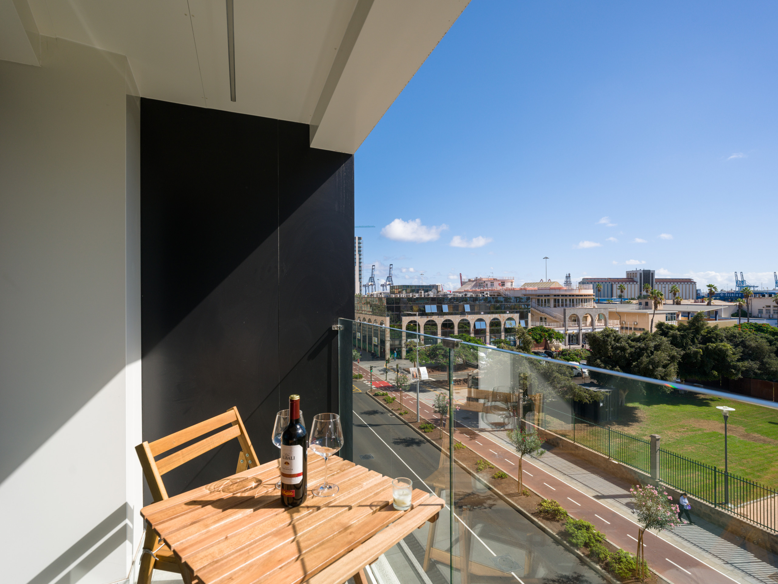 Un balcón con vistas al mar, al parque y al Castillo de la Luz, te permitirá disfrutar de los increíbles paisajes de Las Palmas, creando momentos únicos durante tu viaje.