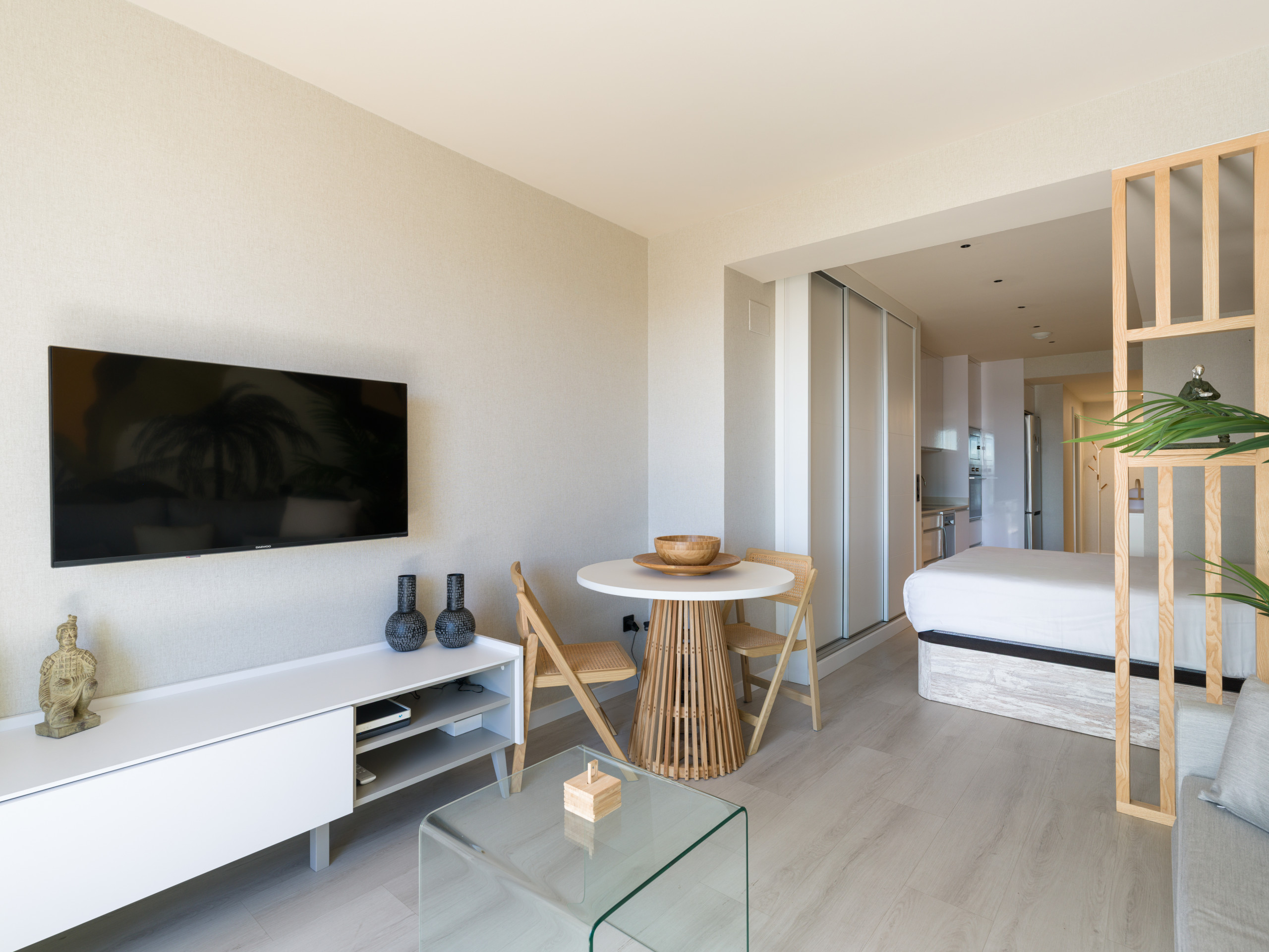 Este moderno apartamento de 40 metros cuadrados ofrece un ambiente íntimo y funcional con una distribución americana que maximiza el espacio. Cuenta con una cama doble que garantiza un descanso reparador y un baño completo con ducha, ideal para refrescarse después de un día de trabajo o turismo.