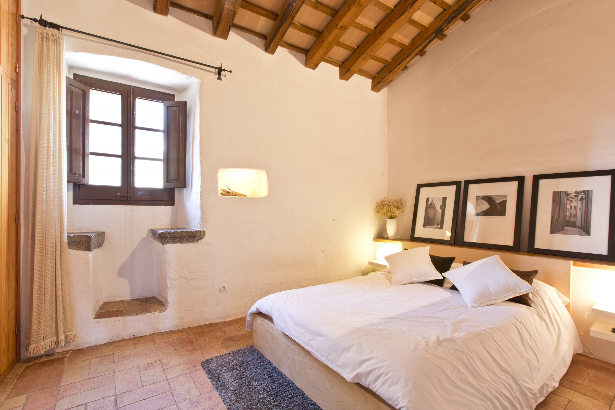 Esta masía del siglo XVI está situada en el casco antiguo de Bellcaire d’Empordà, delante del castillo medieval de los condes de Empúries y con vistas al macizo y al Castillo del Montgrí. Ésta masia ha sido restaurada por los arquitectos Terradas, amigos de la familia y autores de edificios emblemáticos de la Ciudad de Barcelona. Se apostó por conservar la esencia de los espacios y elementos más característicos de la casa y en los exteriores se optó por un jardín moderno pero atemporal con materiales naturales.