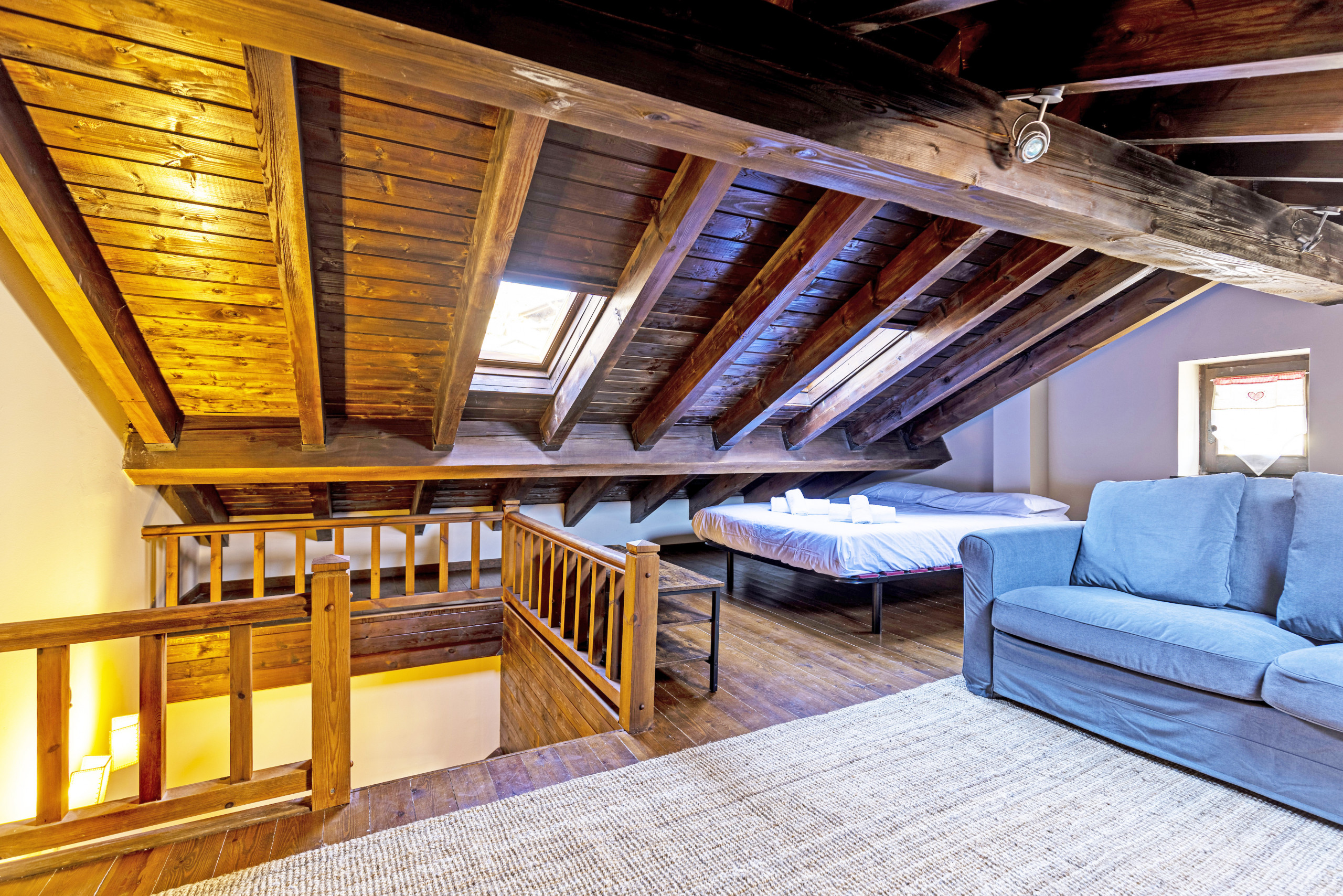 En la última planta se encuentra la buhardilla dónde hay un espacio dormitorio con cama doble y otro salón con todas las comodidades.