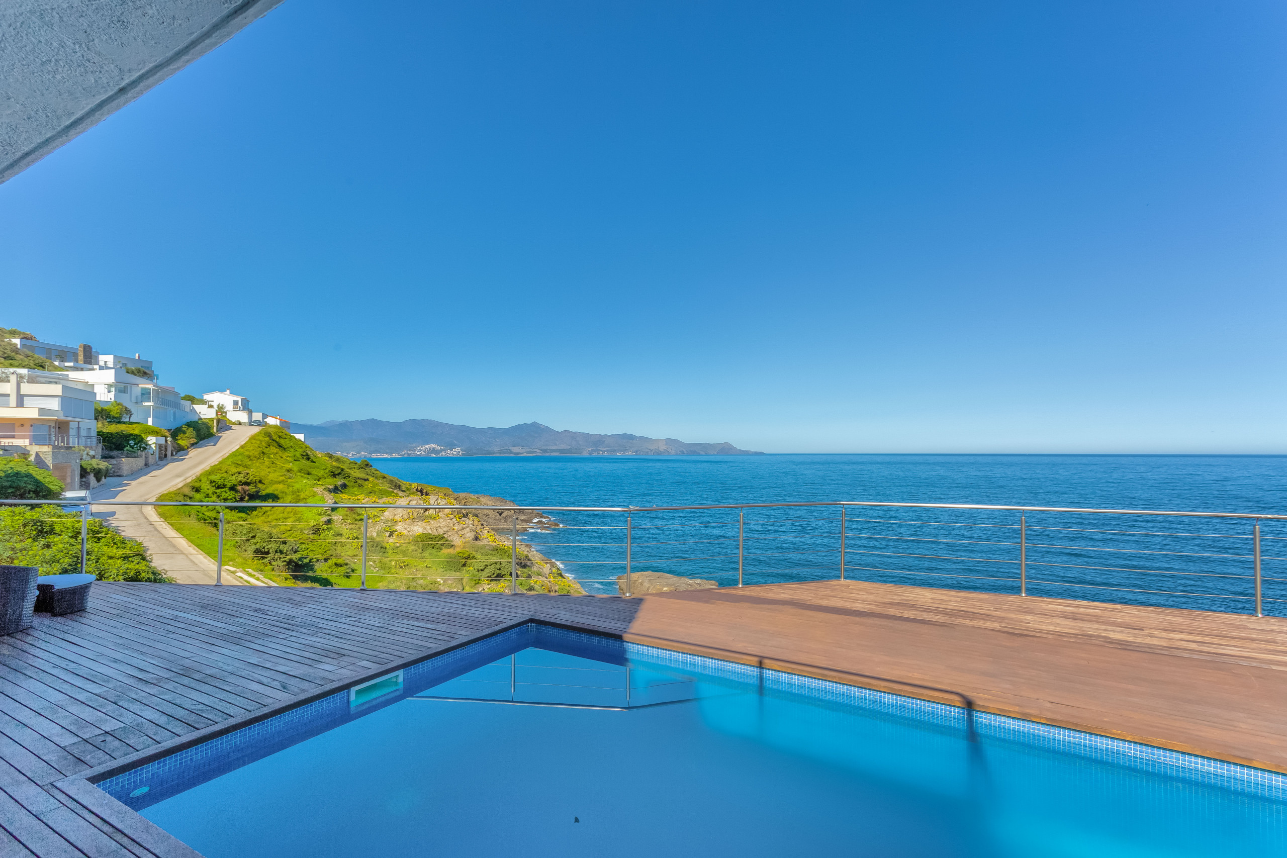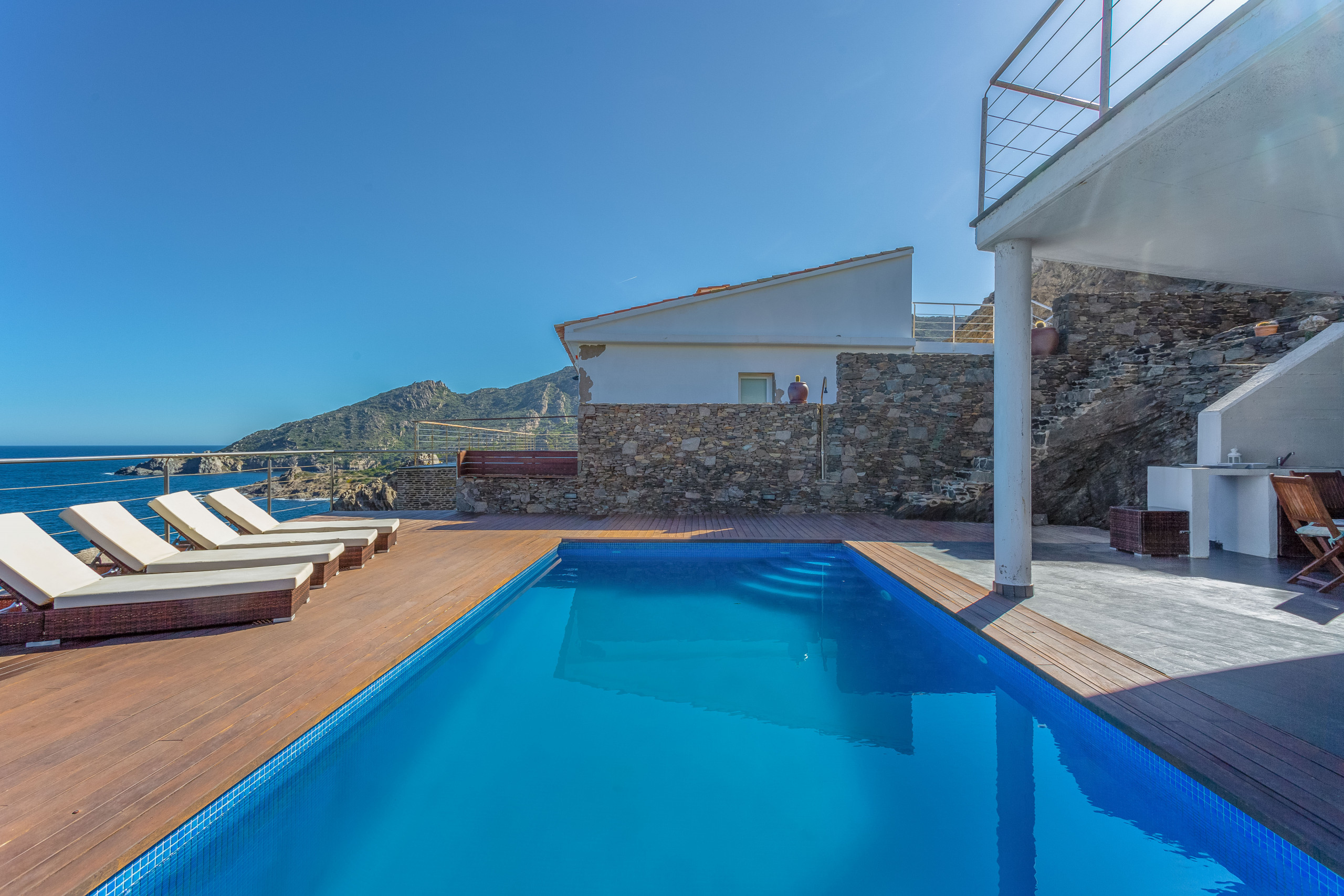 Desde la piscina (y toda la casa) podemos disfrutar de unas vistas de 180º que abarcan desde el Golfo de León hasta el horizonte del Cap de Creus.
