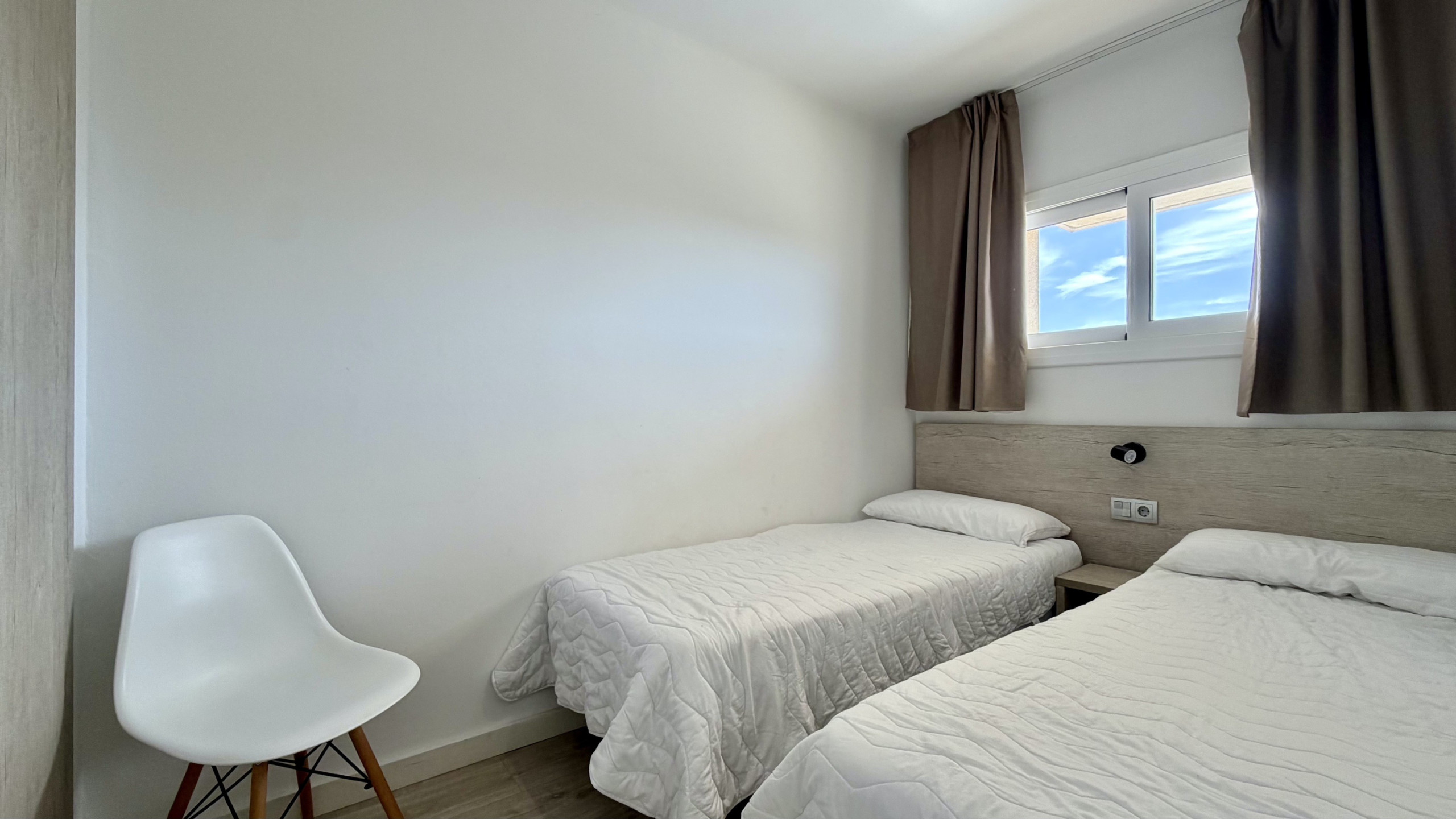 L'appartement dispose de deux chambres bien réparties, comprenant quatre lits individuels, garantissant un repos confortable pour tous les invités ainsi que le canapé-lit double du salon-salle à manger. La cuisine américaine est entièrement équipée d'appareils électroménagers modernes tels que réfrigérateur, machine à laver, four, lave-vaisselle, grille-pain et machine à café, facilitant la préparation des repas pendant le séjour.