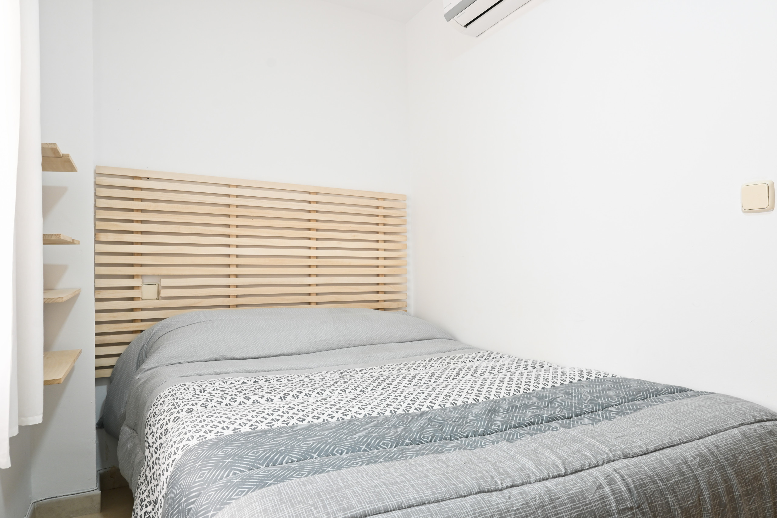 - L'appartement dispose d'une chambre indépendante, offrant un espace privé et accueillant pour se reposer. Il est meublé avec un lit confortable, une armoire spacieuse et une décoration moderne qui crée une ambiance relaxante.