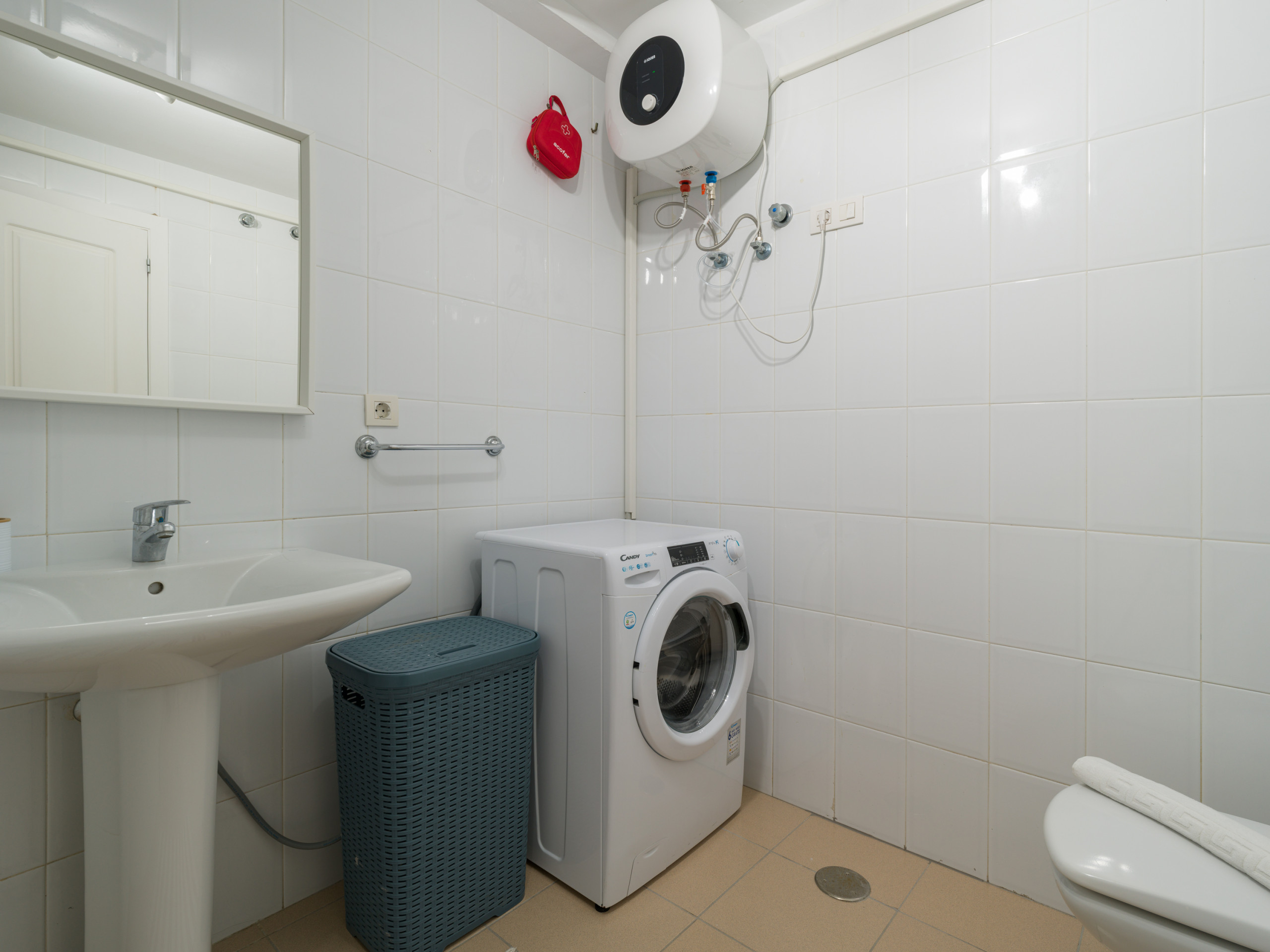 La cuisine est entièrement équipée d'appareils électroménagers modernes, comprenant un réfrigérateur, un congélateur, un lave-linge, un four, un micro-ondes, une cafetière, un grille-pain et une bouilloire. De plus, elle dispose de tous les ustensiles de cuisine nécessaires pour préparer des repas délicieux pendant votre séjour.
