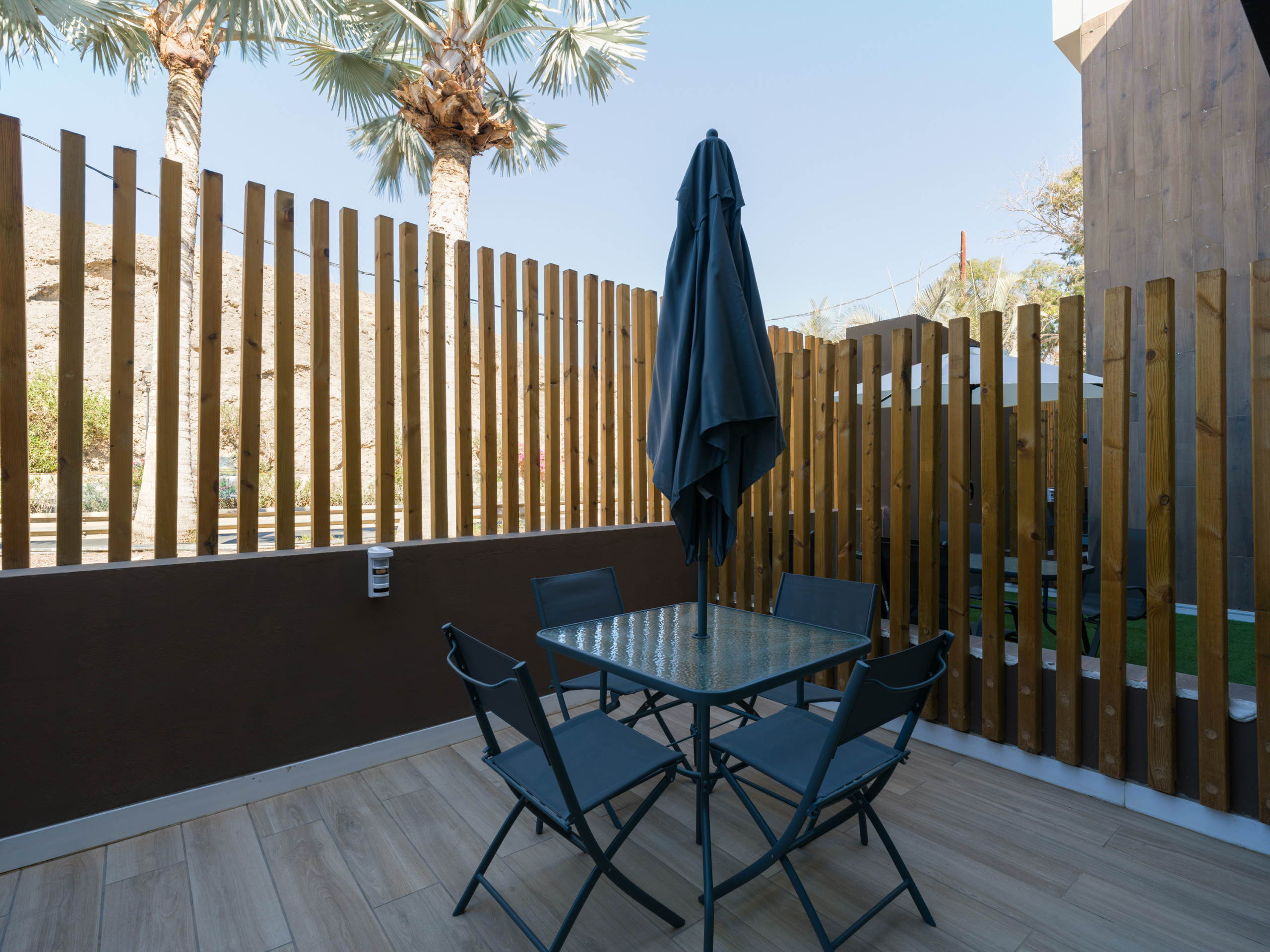Sa salle de bain lumineuse avec douche et les détails soigneusement sélectionnés vous feront vous sentir comme chez vous. La terrasse de 9 mètres carrés vous permettra de profiter de moments de détente sous le soleil canarien. Il est uniquement autorisé de fumer sur la terrasse ; il est interdit de fumer à l'intérieur du logement.