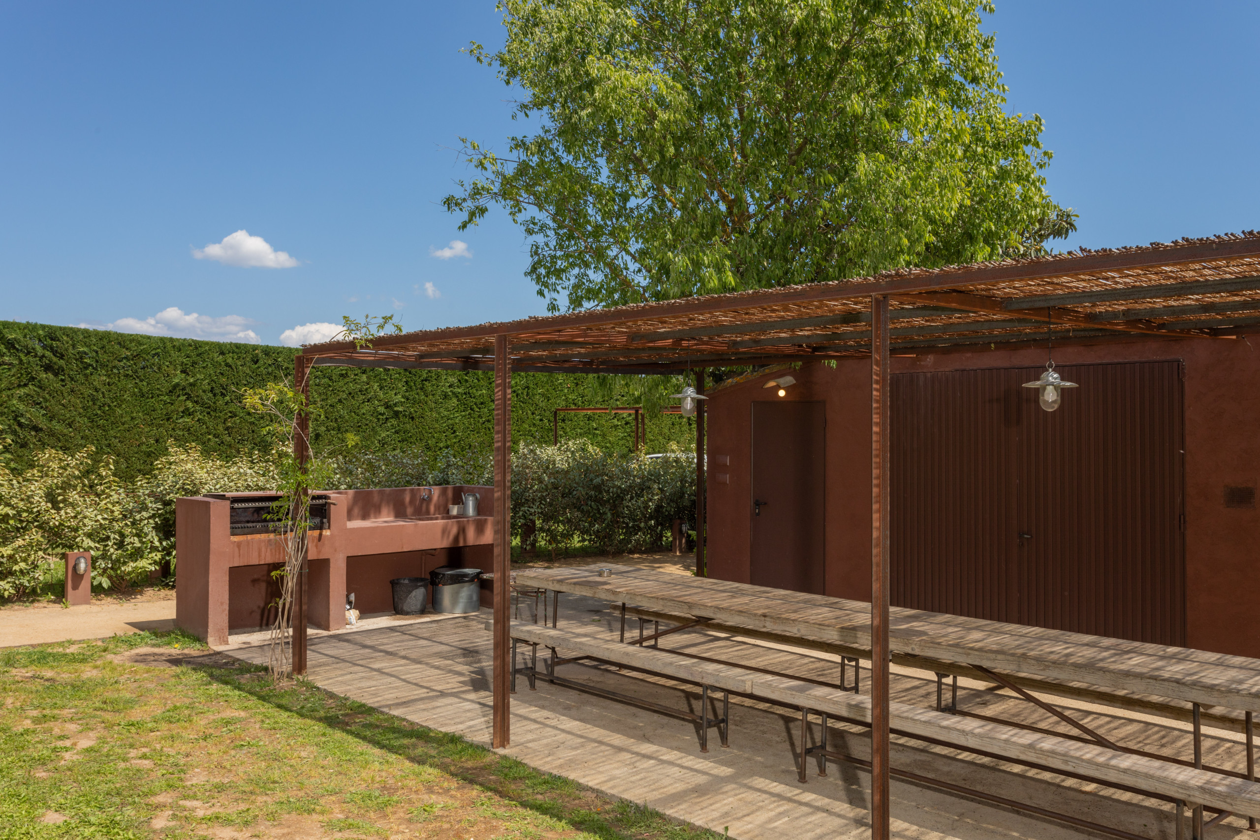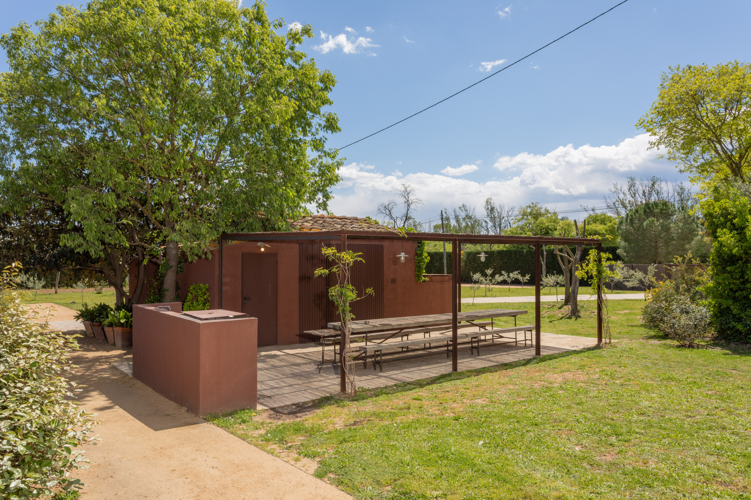 À l'extérieur, cette parcelle de 3 000 m² est divisée en une zone de repas extérieure, une zone de détente et de piscine et enfin un grand jardin parfait pour que les enfants profitent d'un grand espace entièrement clôturé, sûr et privé.