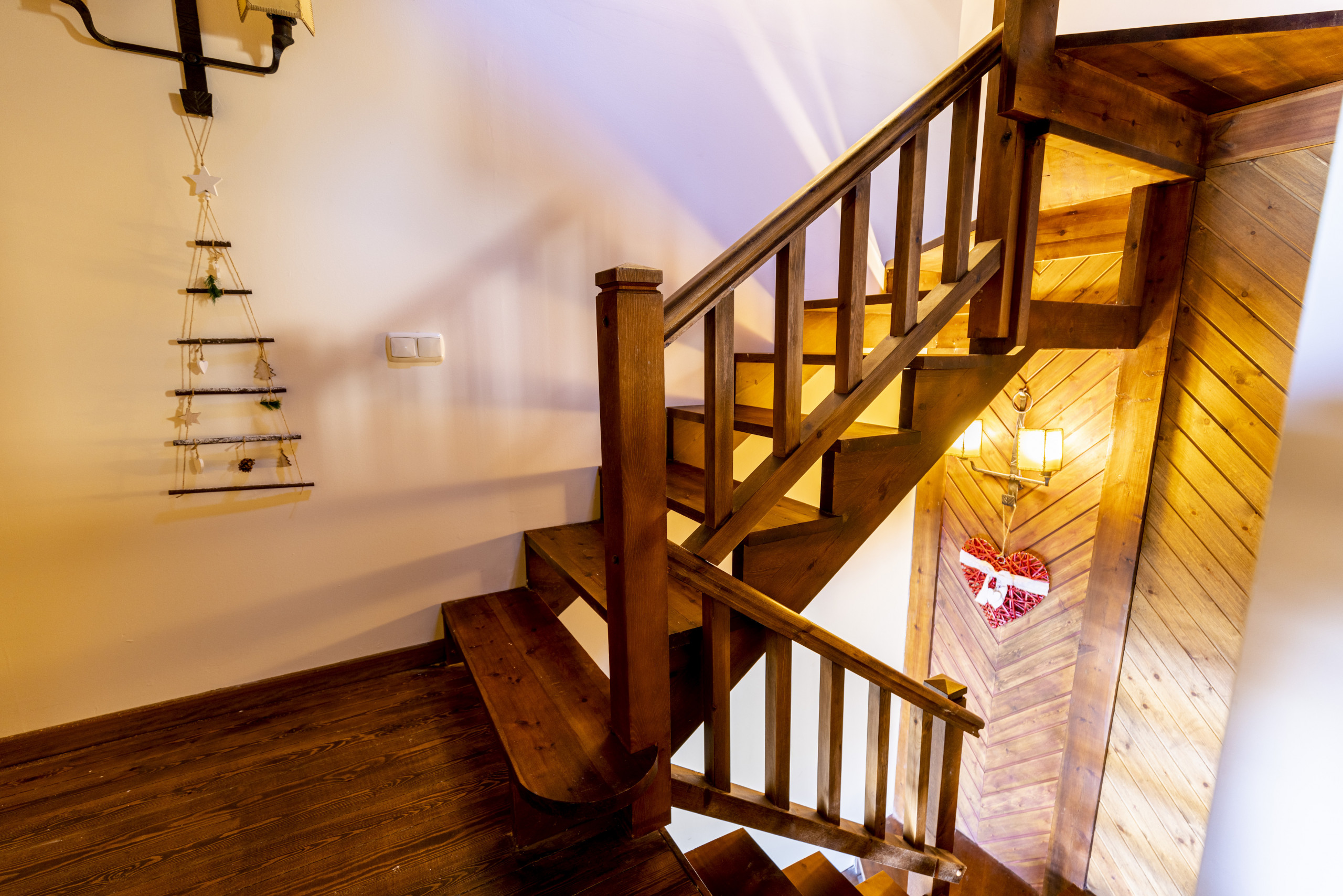 Au premier étage se trouvent 3 chambres, dont deux avec un lit double et une avec un lit superposé. Il y a aussi deux salles de bains complètes, l'une avec baignoire et l'autre avec douche.