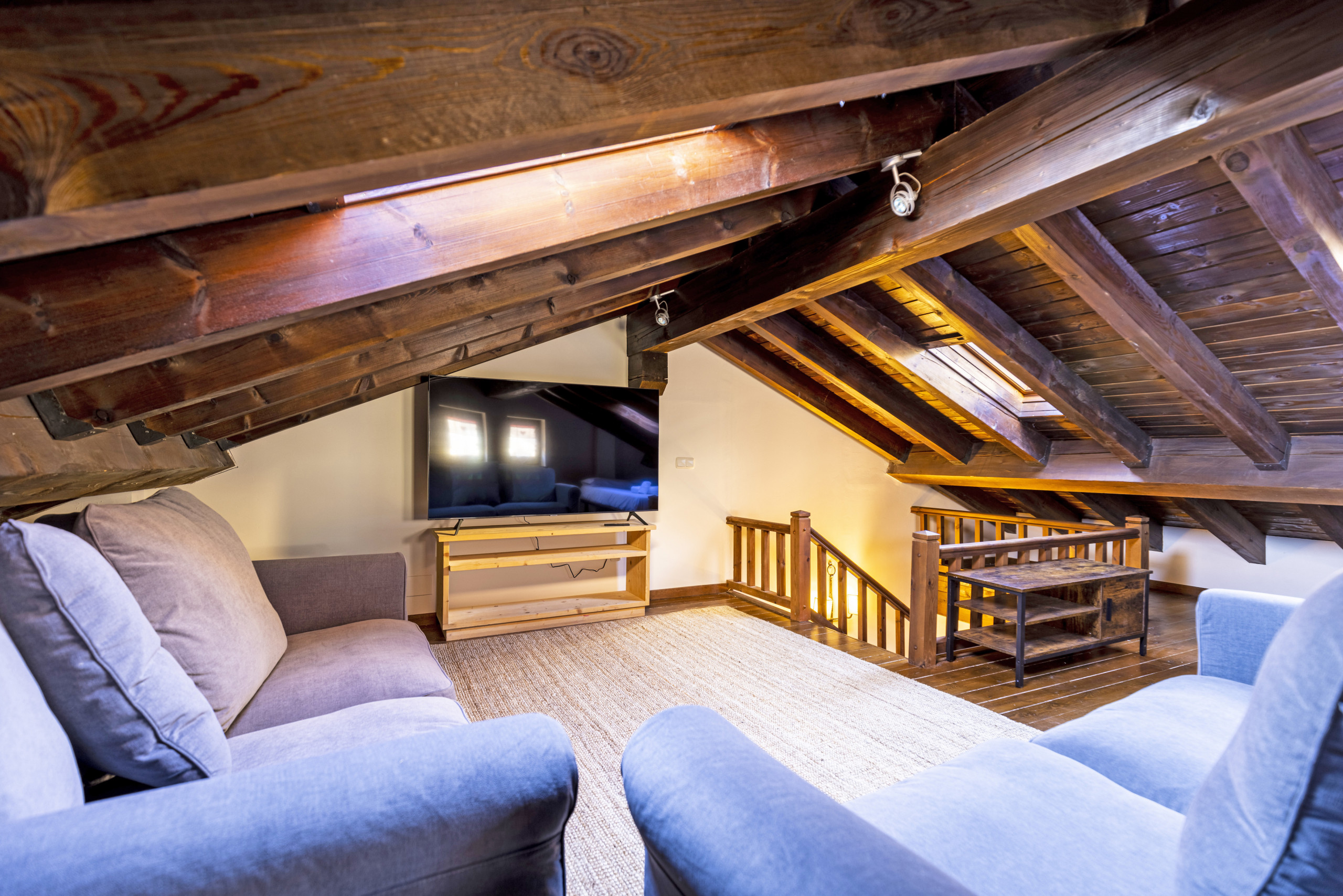 Au dernier étage se trouve le grenier où il y a un espace chambre avec un lit double et un autre salon avec tout le confort.
