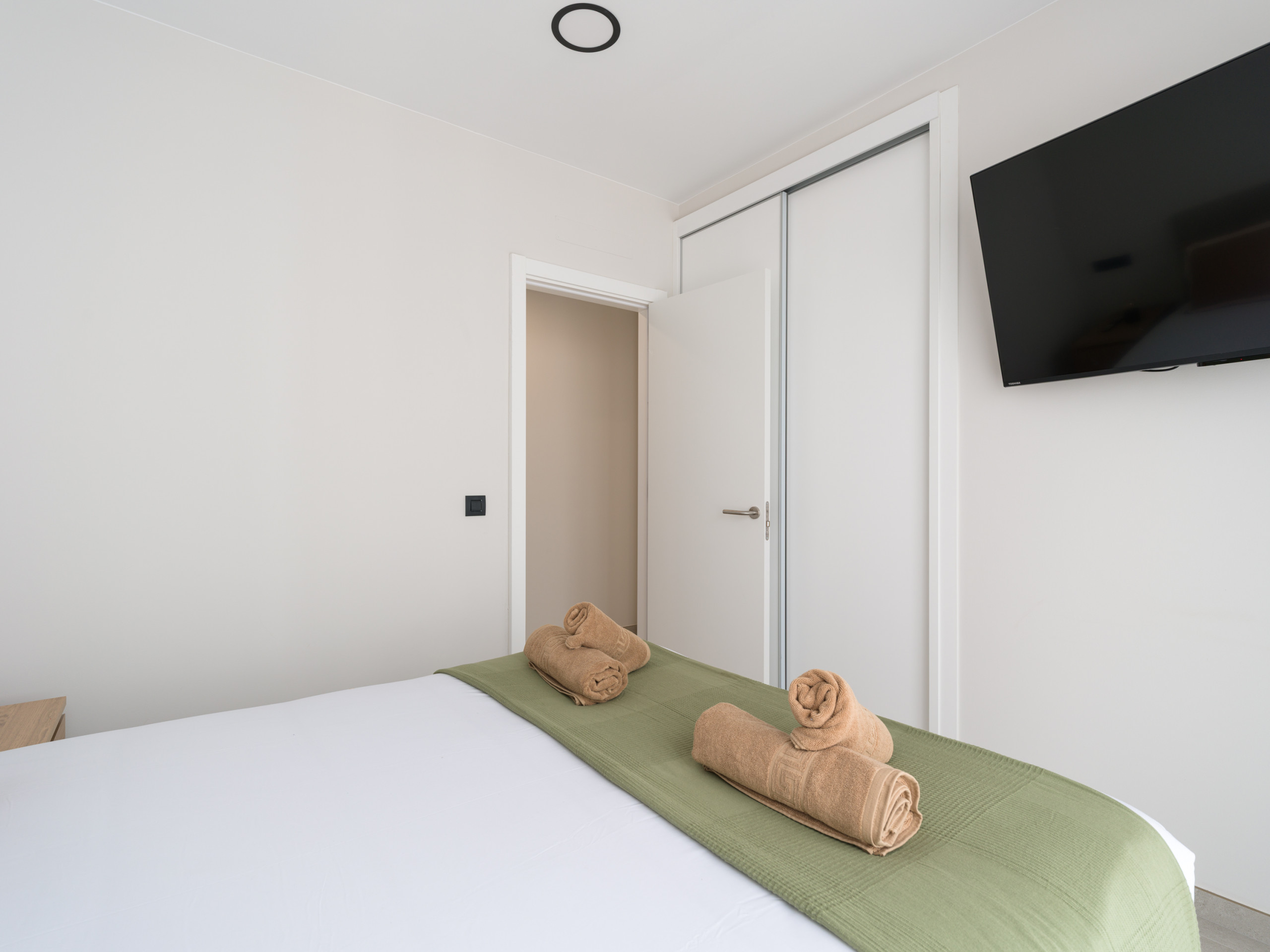 Il salone è accogliente e dispone di un'area pranzo, una smart TV con canali satellitari e un divano per rilassarsi. L'aria condizionata e la pompa di calore garantiscono una temperatura perfetta durante tutto l'anno. Inoltre, l'appartamento offre WiFi ad alta velocità ed è progettato per essere compatibile con dispositivi elettronici.