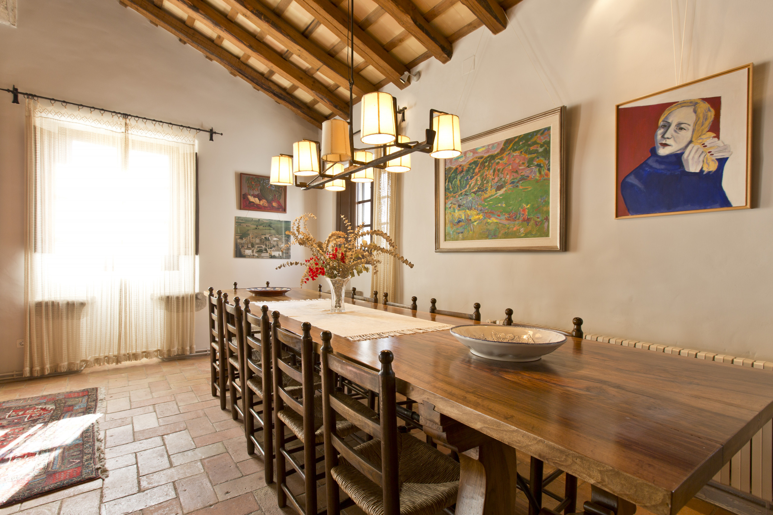 Ha giardino, giardino arredato, casa recintata, 32 m² della terrazza, lavatrice, barbecue, camino, ferro da stiro, accesso internet (wifi), asciugacapelli, balconi, riscaldamento centralizzato, piscina privata, 1 ventilatore, Televisione, tv satellitare.