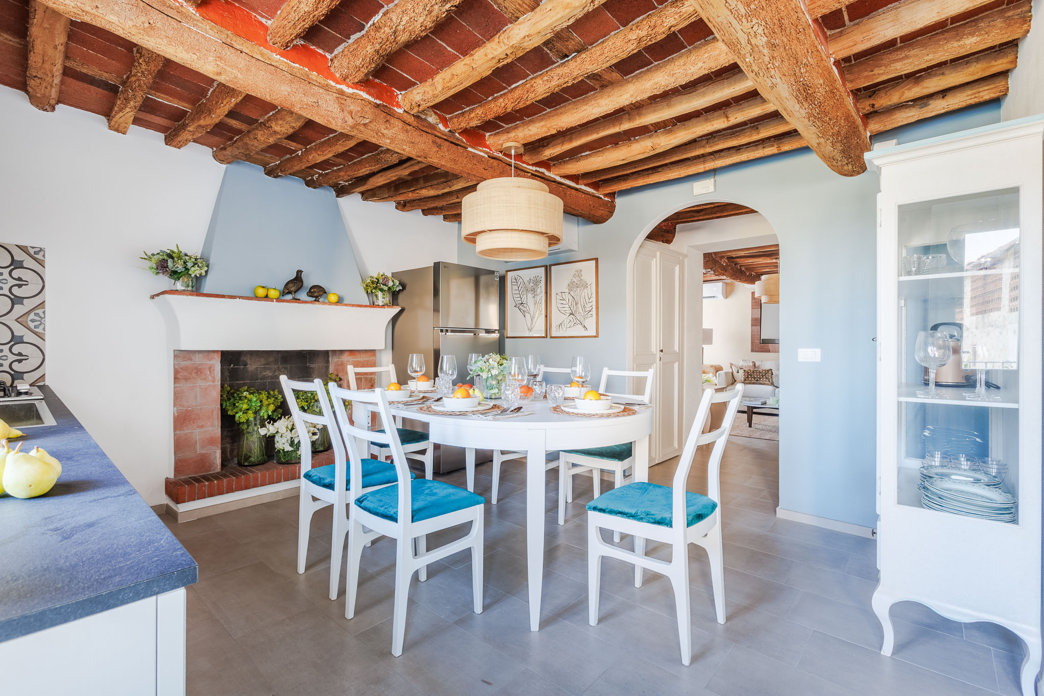La villa può ospitare comodamente fino a 6 persone, con 3 camere da letto elegantemente arredate, ciascuna con un letto matrimoniale. Gli interni sono curati nei minimi dettagli, con un design che miscela comfort moderno e charme tradizionale toscano. L'ampia proprietà di 106 mq è completamente attrezzata per garantire un soggiorno piacevole e rilassante.