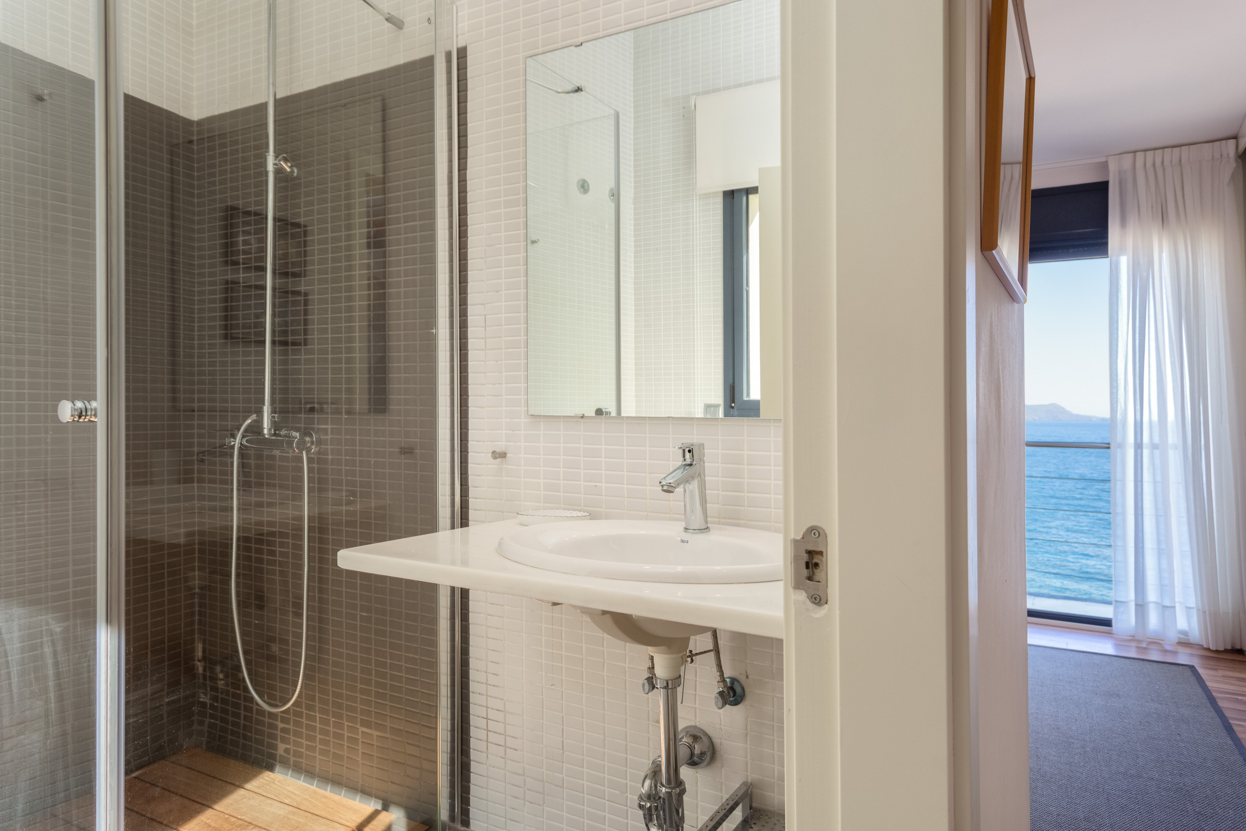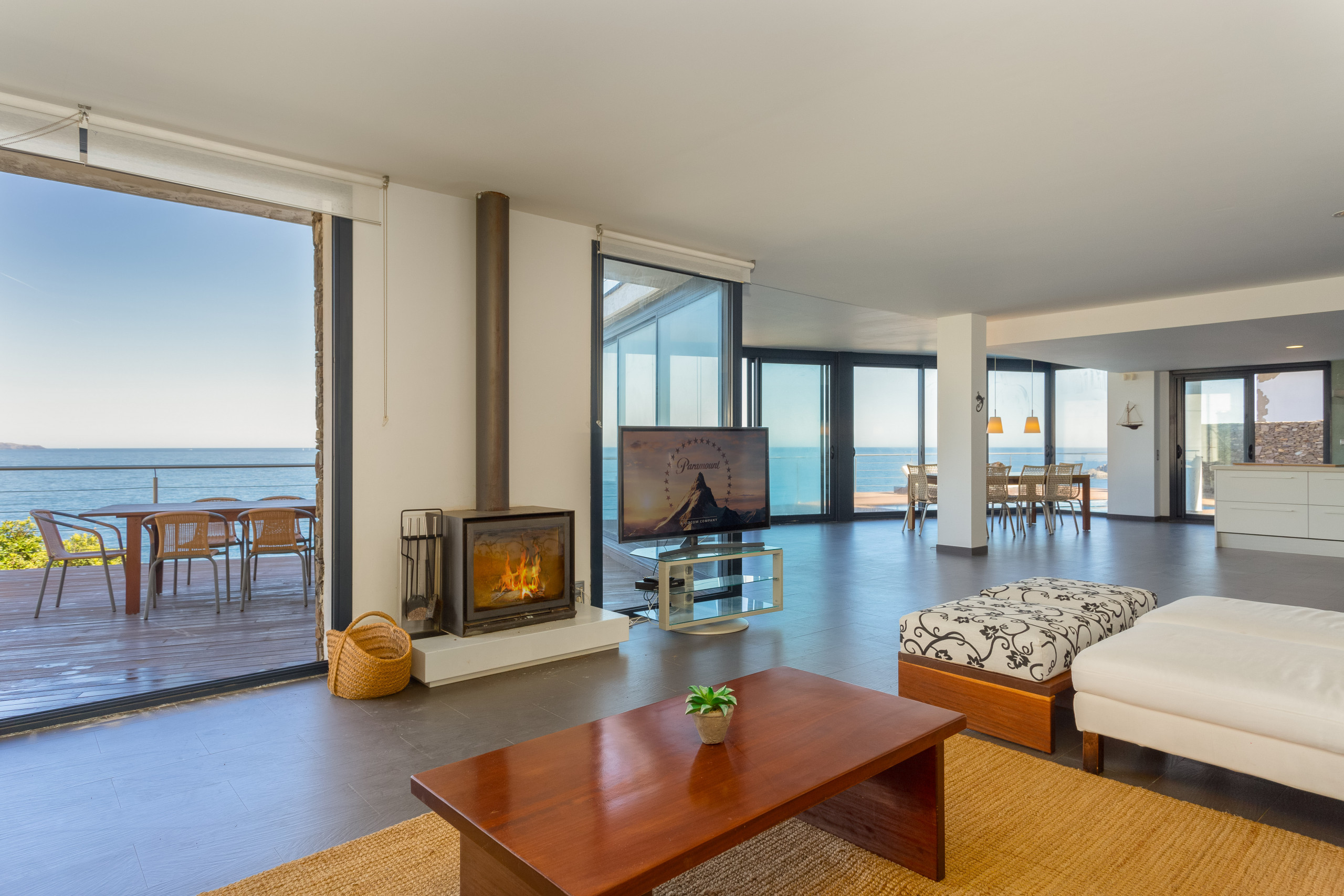Bellissima abitazione distribuita su due piani collegati tramite ascensore dal garage. Al piano nobile ci accoglie un imponente soggiorno, con una cucina a vista completa e pareti in vetro con solo il mare come vista meravigliosa. Ampio divano, falò, tavolo per tutti i commensali e tutto il necessario per godersi comodamente il soggiorno. Le finestre danno accesso diretto all'area esterna, un'accogliente terrazza con vista, dotata di due zone pranzo, una più appartata, ideale per la colazione e un'altra con un grande tavolo per più commensali che ci invita a condividere piacevoli cene con magnifici tramonti . Una spettacolare piscina con lettini e zona divani.