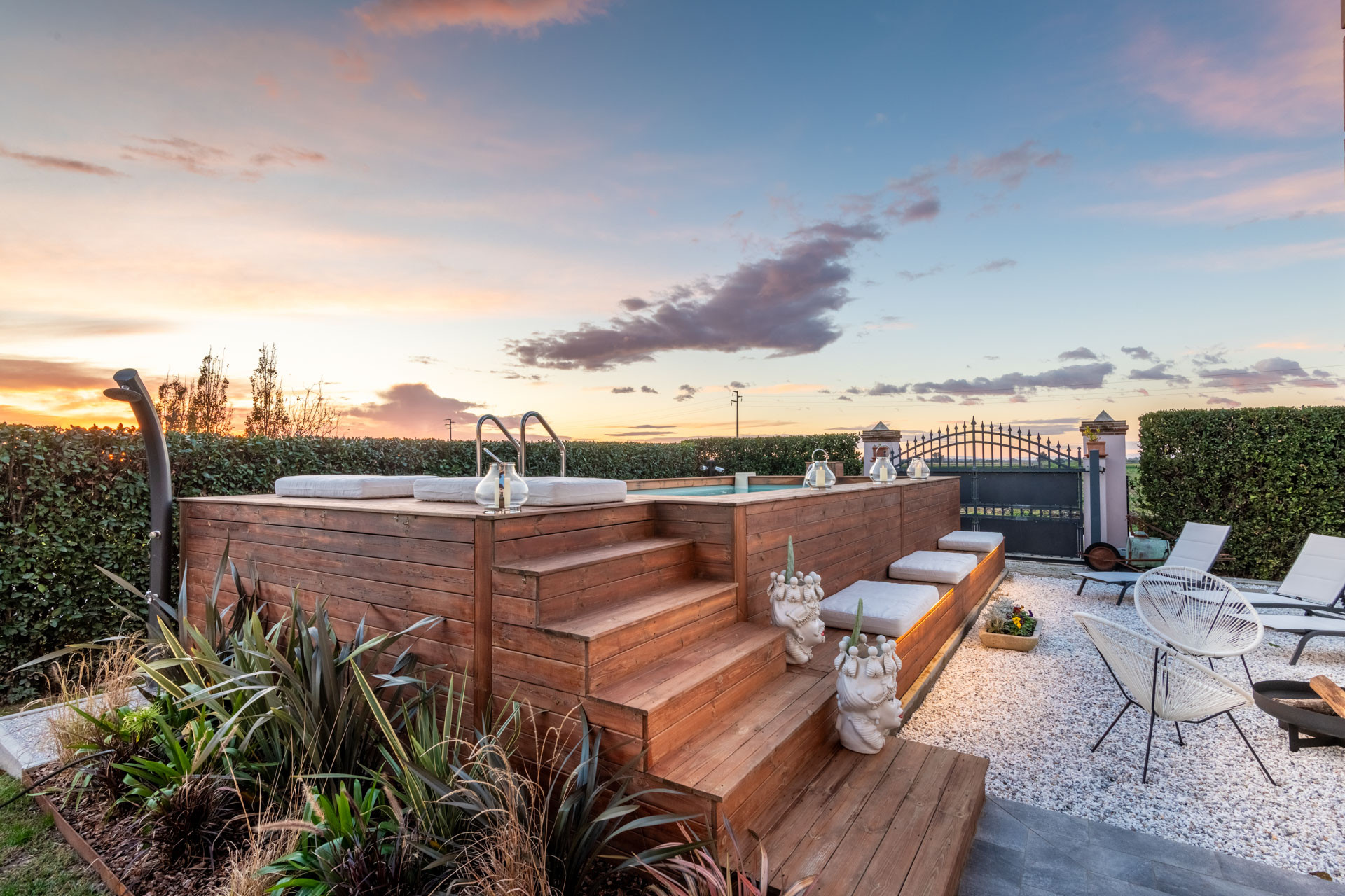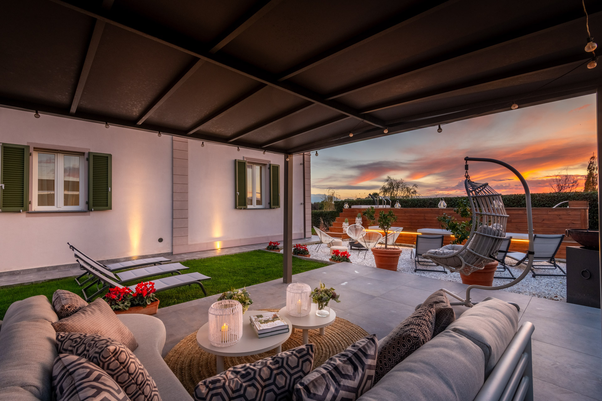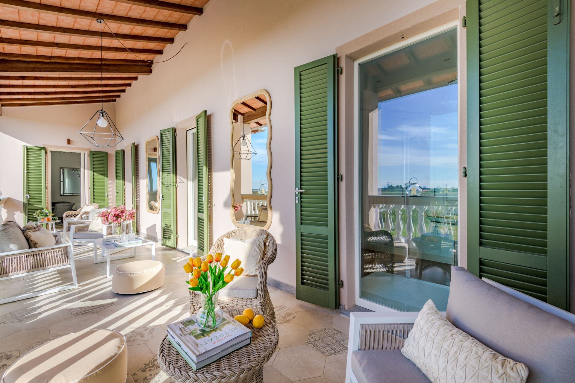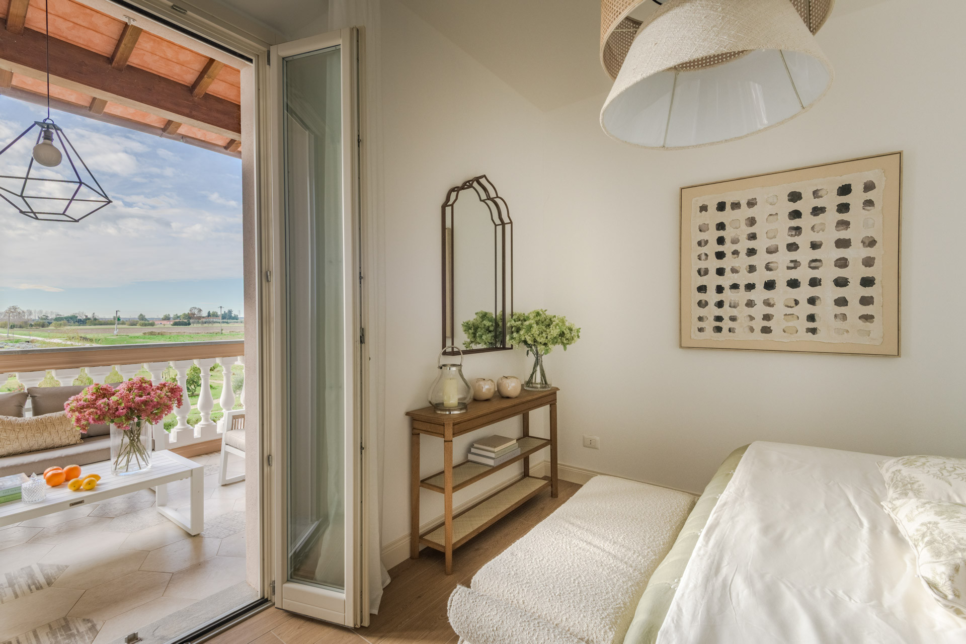 La vita a Villa Bubi scorre senza sforzo tra interni ed esterni. Trascorri le tue giornate accanto alla piscina privata, rilassandoti su arredi da esterno di lusso mentre la campagna si estende all'infinito intorno a te. La terrazza panoramica e la veranda ombreggiata sono perfette per lunghi aperitivi, cene a lume di candela o semplicemente per guardare il sole tramontare dietro i campi—qui i tramonti non vengono solo visti, ma sentiti.