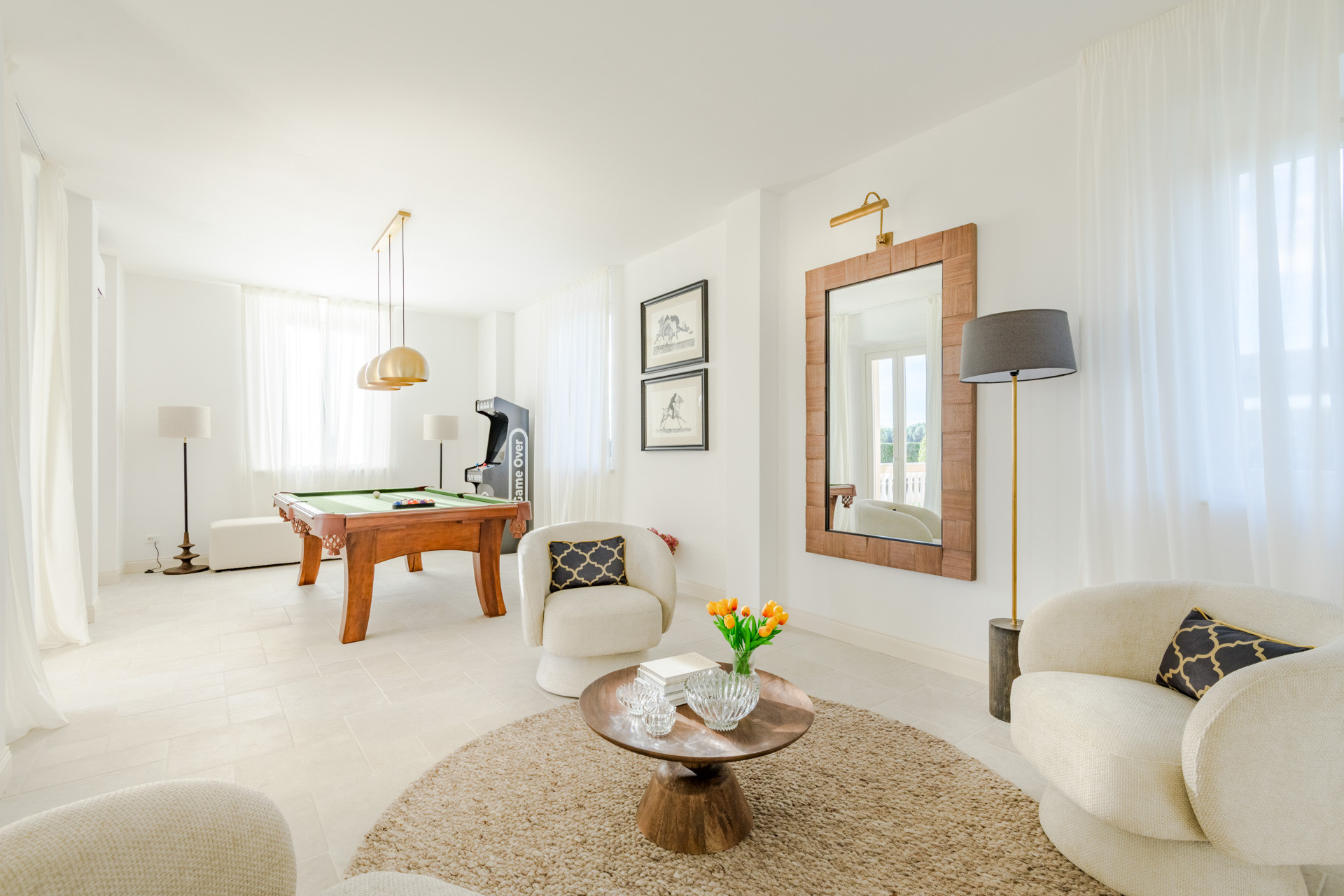 Per momenti di gioco e connessione, la villa offre un'elegante sala da biliardo e un'occasione rara: una console originale di videogiochi arcade degli anni '90, che porta un tocco nostalgico di divertimento alle serate a casa.