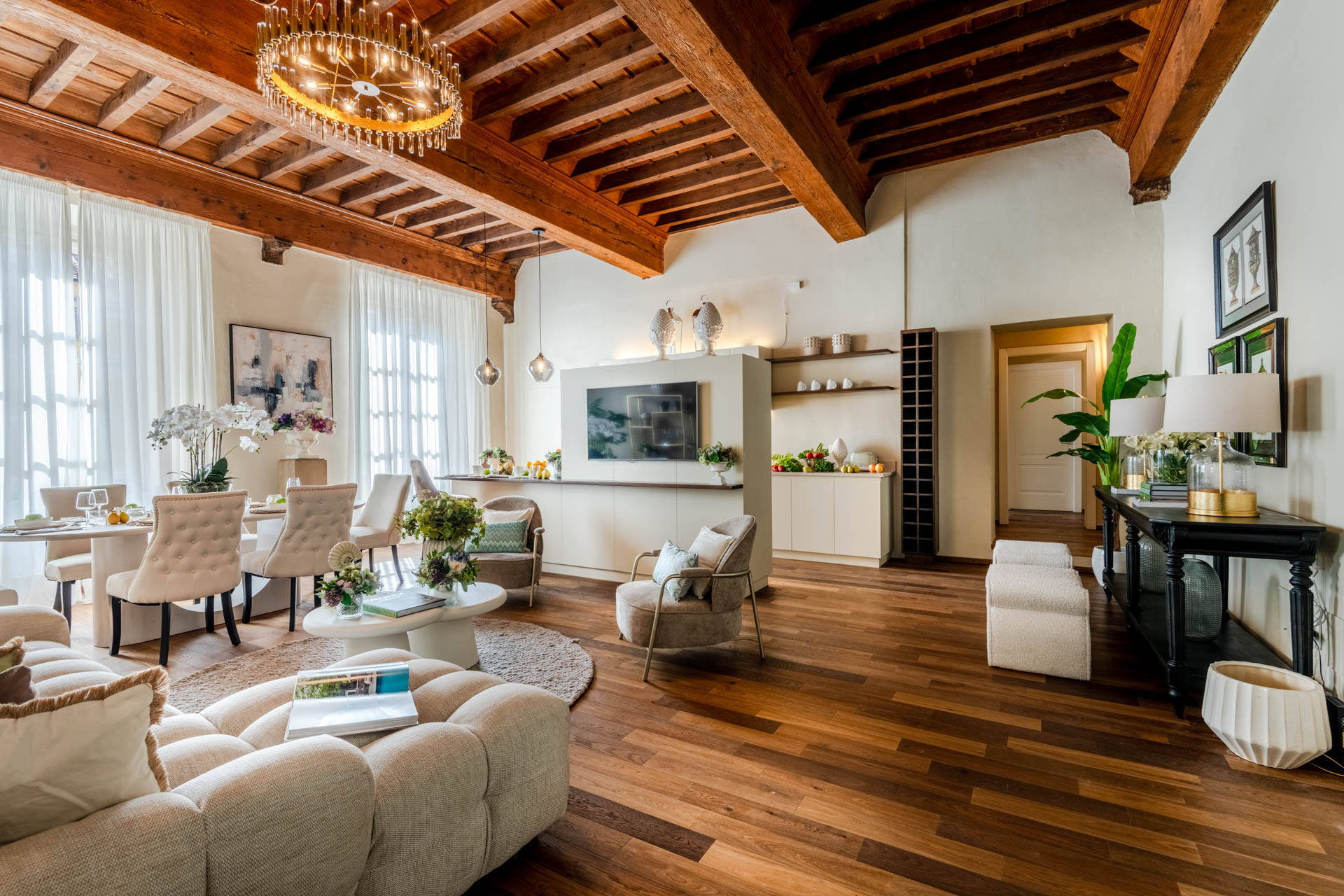 Modern and new interior, well equipped facilities (kitchen, bathroom), comfortable bed. Spacious rooms and living area. Located at the one of the most popular piazza of Lucca, with Conad supermarket in 2 mins walk and delicious caffe just below. Very