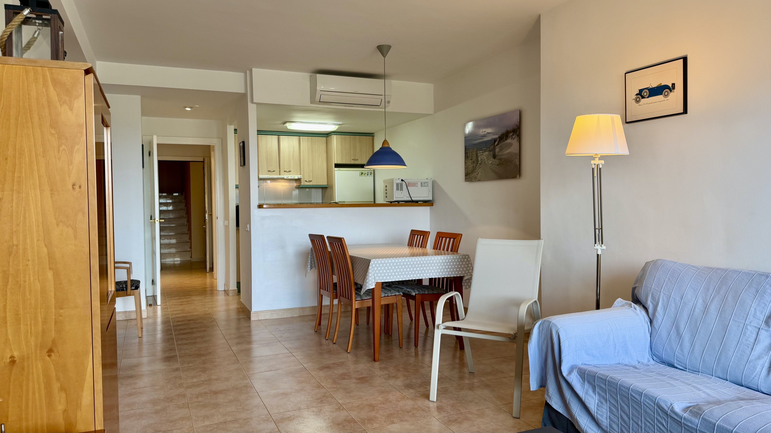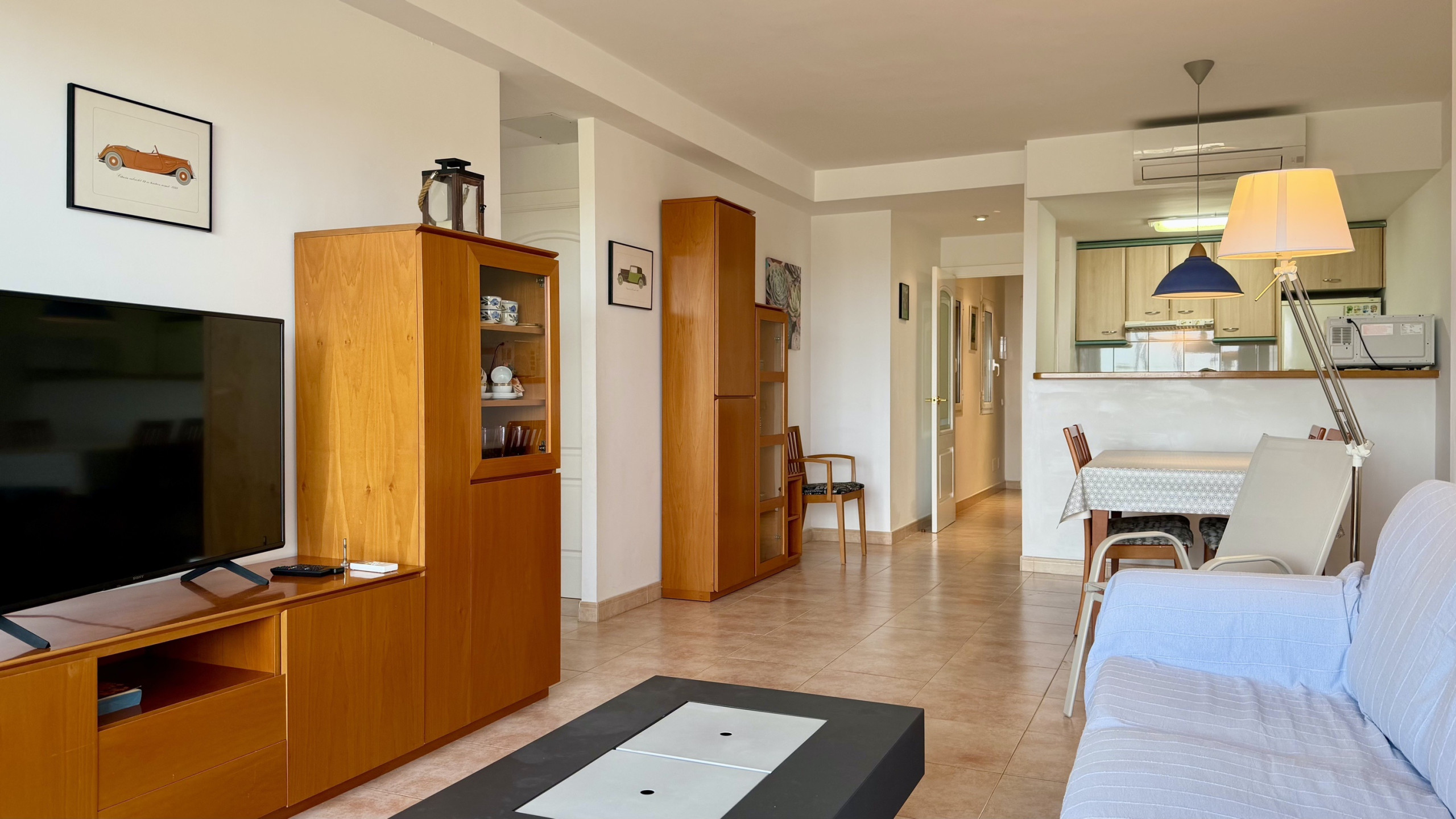 Dispõe de elevador, jardim, mobiliário de jardim, terraço, máquina de lavar roupa, ferro de engomar, aquecimento de bomba de calor, ar-condicionado só na sala, piscina comunitária+infantil, parking coberto no mesmo edifício, 1 Televisão.