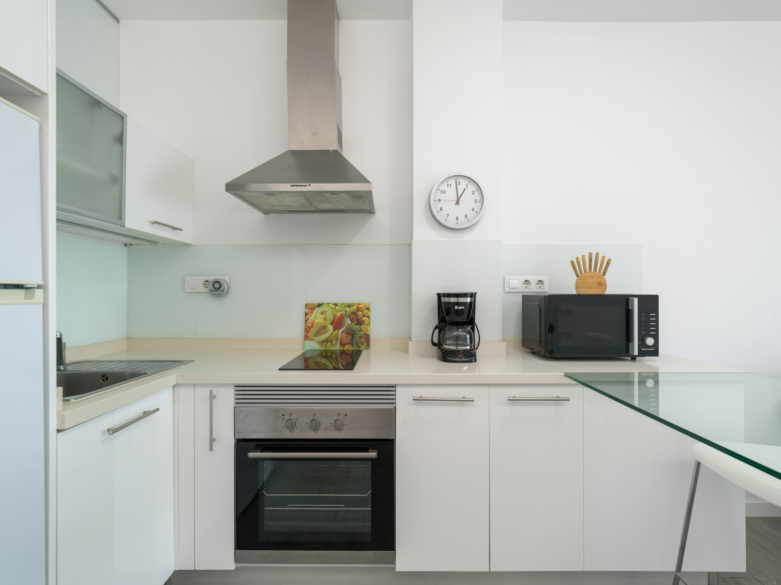 A cozinha americana está completamente equipada com eletrodomésticos modernos como frigorífico, congelador, micro-ondas, máquina de café, torradeira, chaleira e espremedor. Encontrará todos os utensílios de cozinha necessários para preparar refeições deliciosas durante a sua estadia.