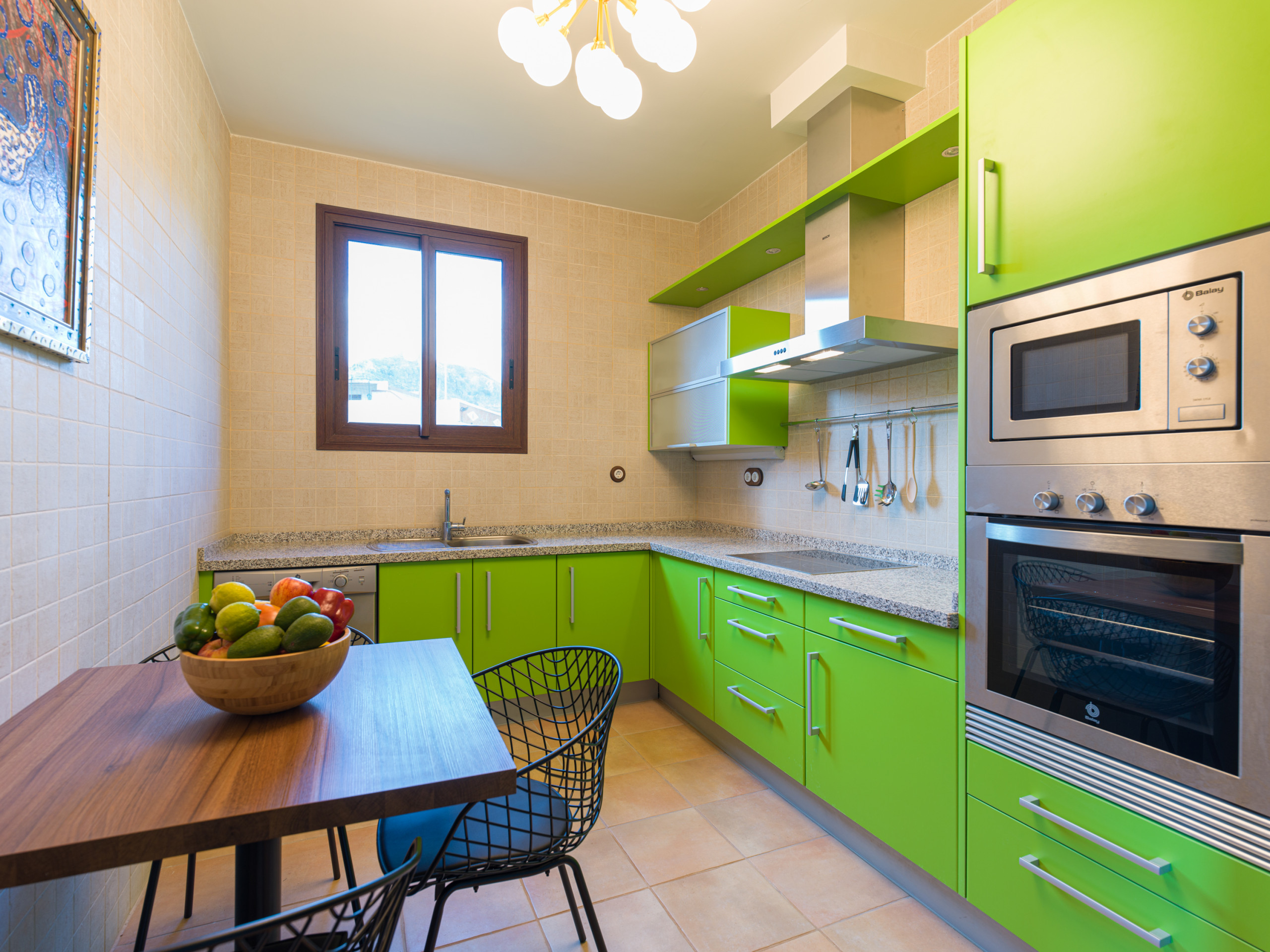 A cozinha está completamente equipada com eletrodomésticos modernos como máquina de lavar, máquina de lavar louça, forno, máquina de café, torradeira, chaleira e louça completa. Ideal para preparar refeições e desfrutar de momentos gastronómicos em família ou com amigos. Além disso, conta com ligação WiFi para se manter comunicado e um televisor para momentos de entretenimento.