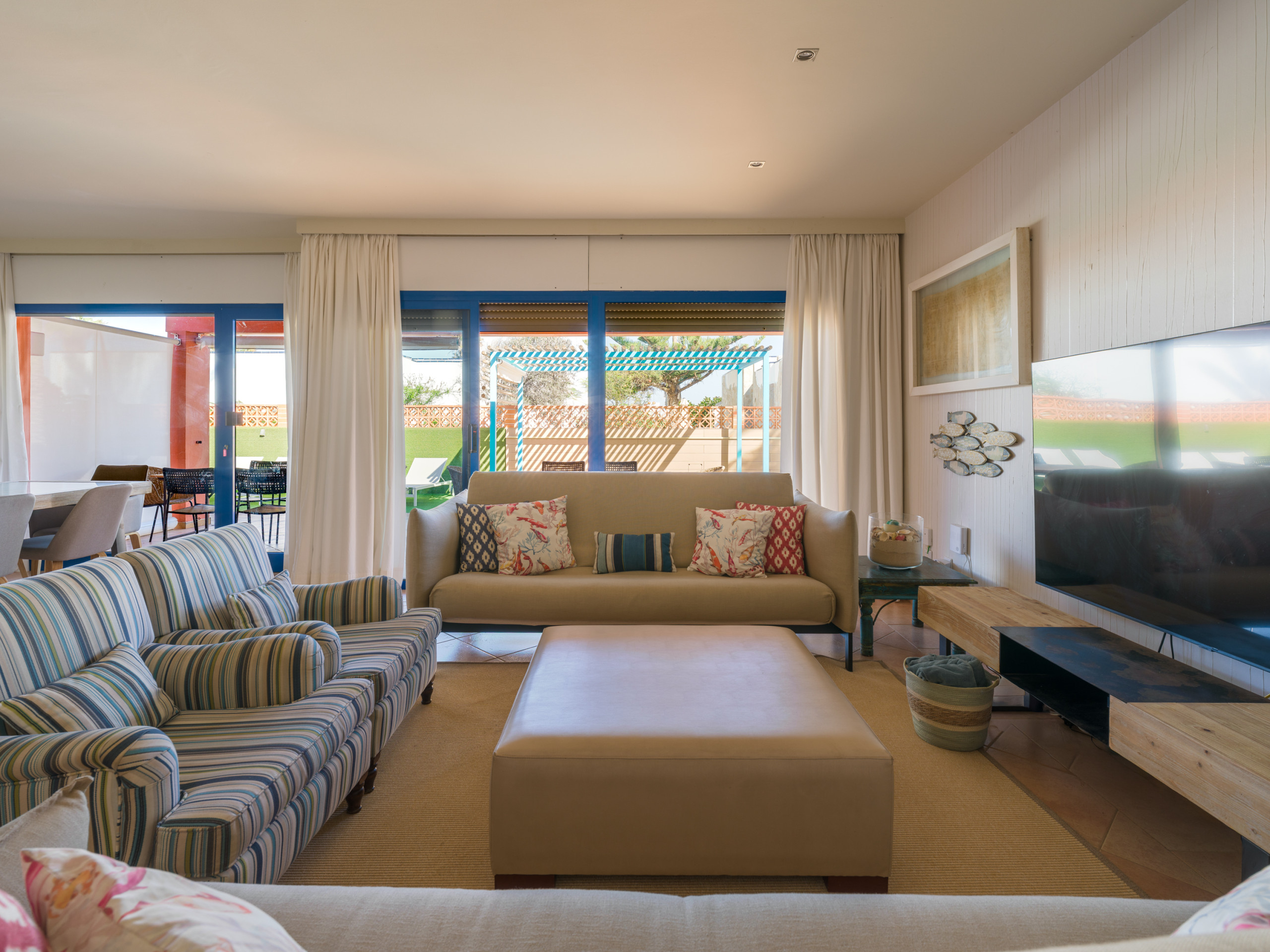 A Villa conta com 3 quartos e 2 casas de banho, com capacidade para até 6 pessoas. Dispõe de uma cozinha americana totalmente equipada com eletrodomésticos de última geração, como forno, micro-ondas, máquina de lavar louça e frigorífico. A zona de jantar e estar é ampla e luminosa, com uma zona de estar confortável.
