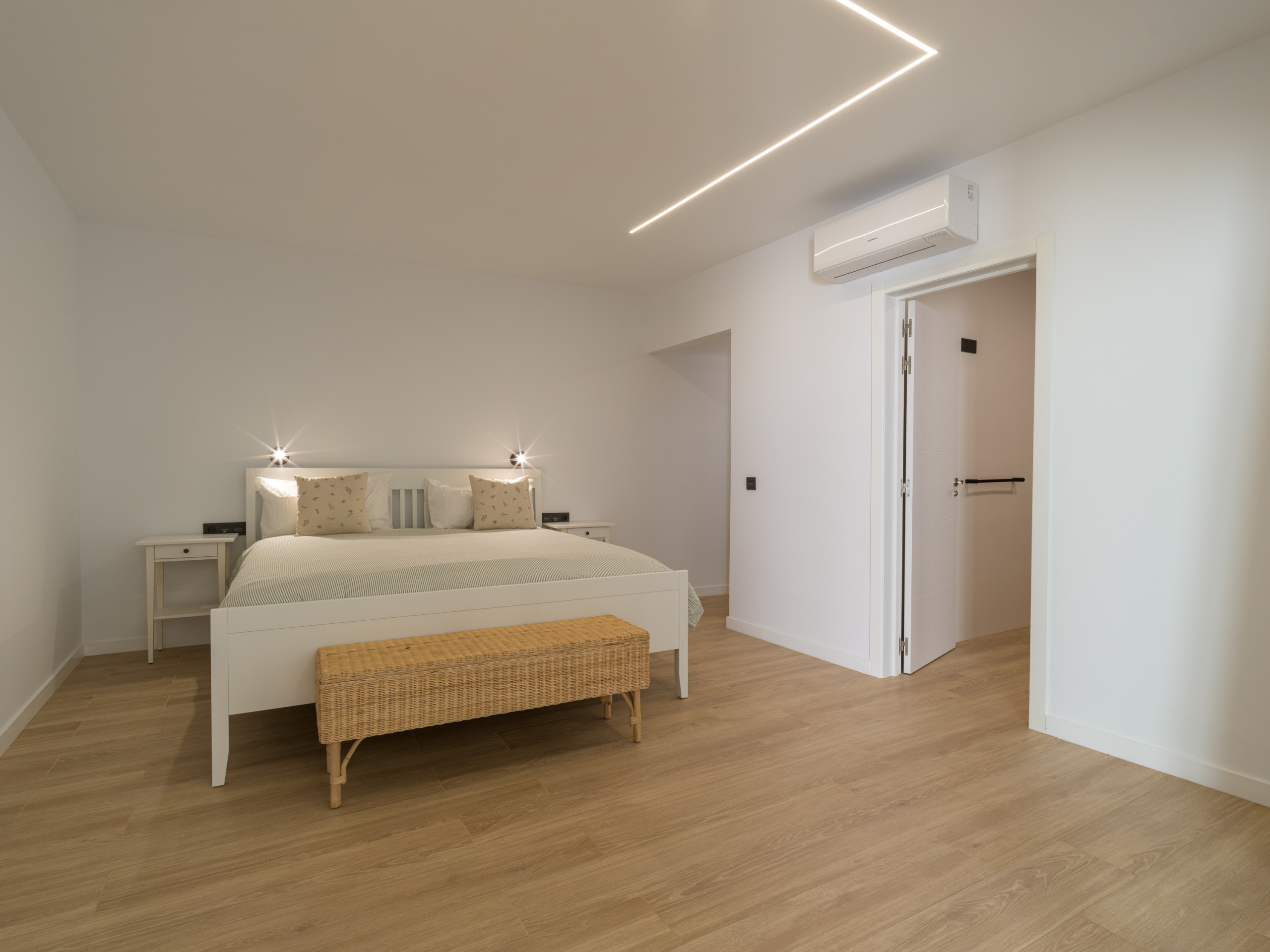 A propriedade dispõe de 4 amplas quartos, todos equipados com camas grandes e confortáveis, roupeiros espaçosos e ar condicionado, pensados para garantir o máximo descanso em qualquer época do ano. No interior encontrarás espaços amplos e bem distribuídos, com duas zonas de estar e uma grande cozinha totalmente equipada, perfeita para partilhar momentos em família ou com amigos.