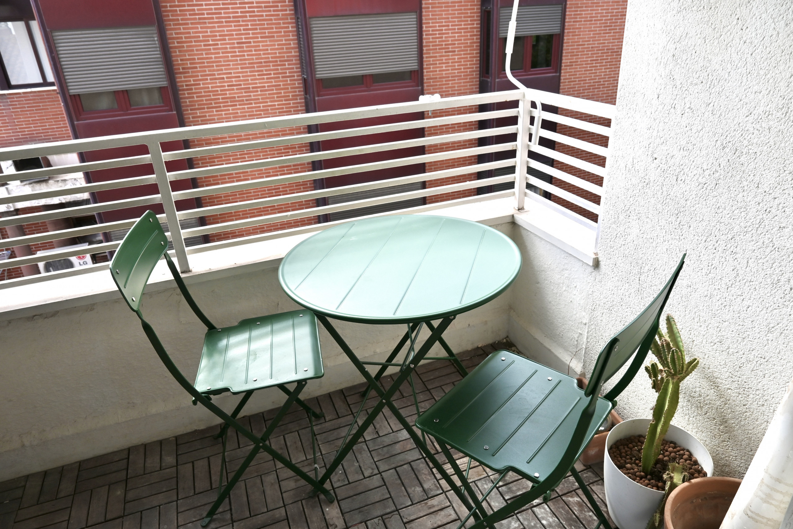 The balcony overlooking the street invites you to enjoy the fresh air and vibrant atmosphere of the city. A perfect space to disconnect and recharge your energy.