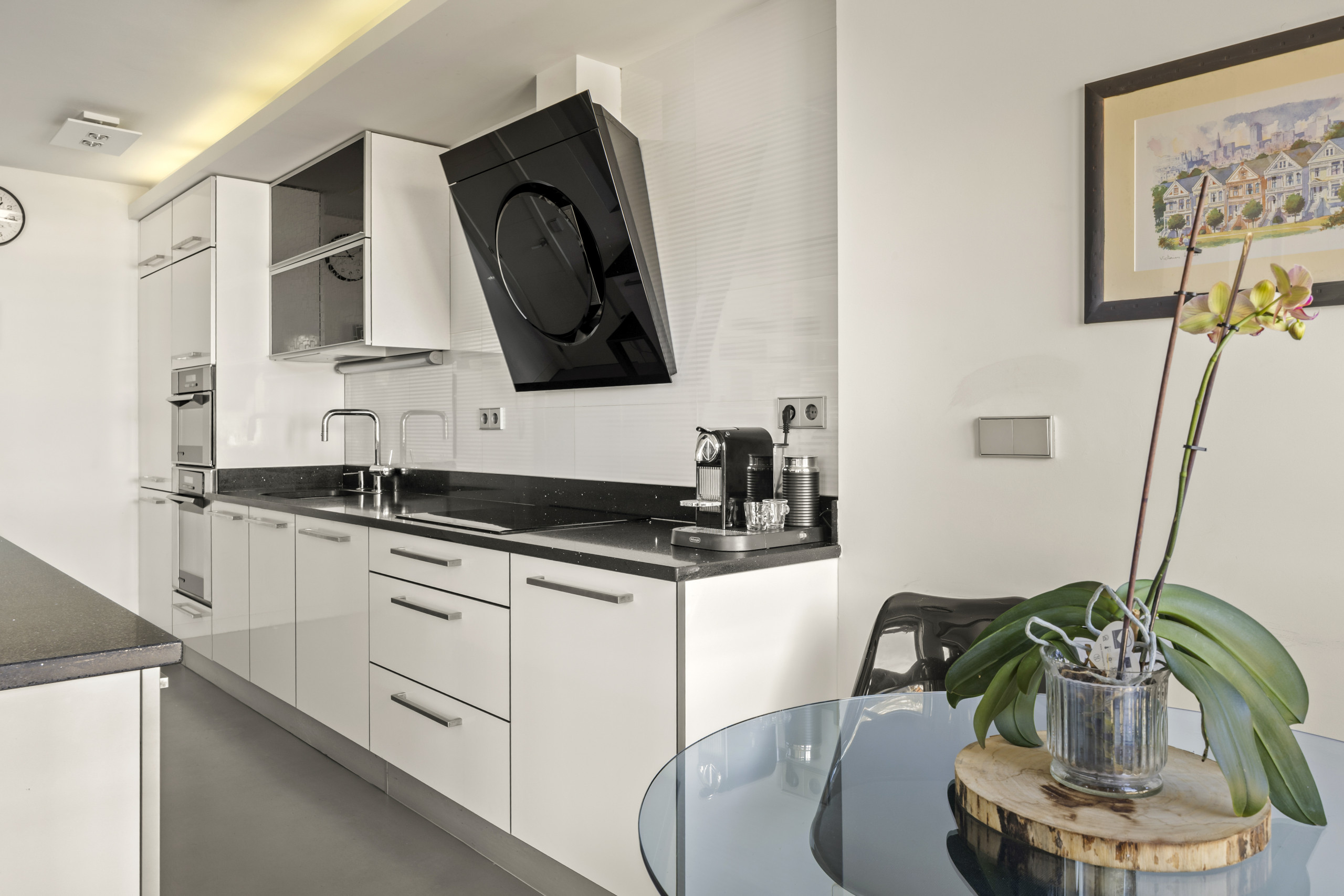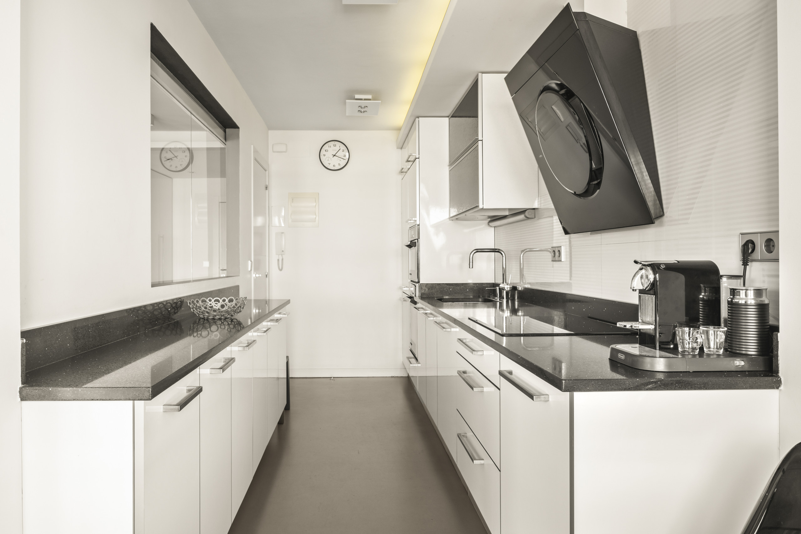 In the hotplate of glass ceramics independent kitchen, refrigerator, microwave, oven, freezer, dishwasher, dishes/cutlery, kitchen utensils, coffee machine, toaster, kettle and juicer are provided.