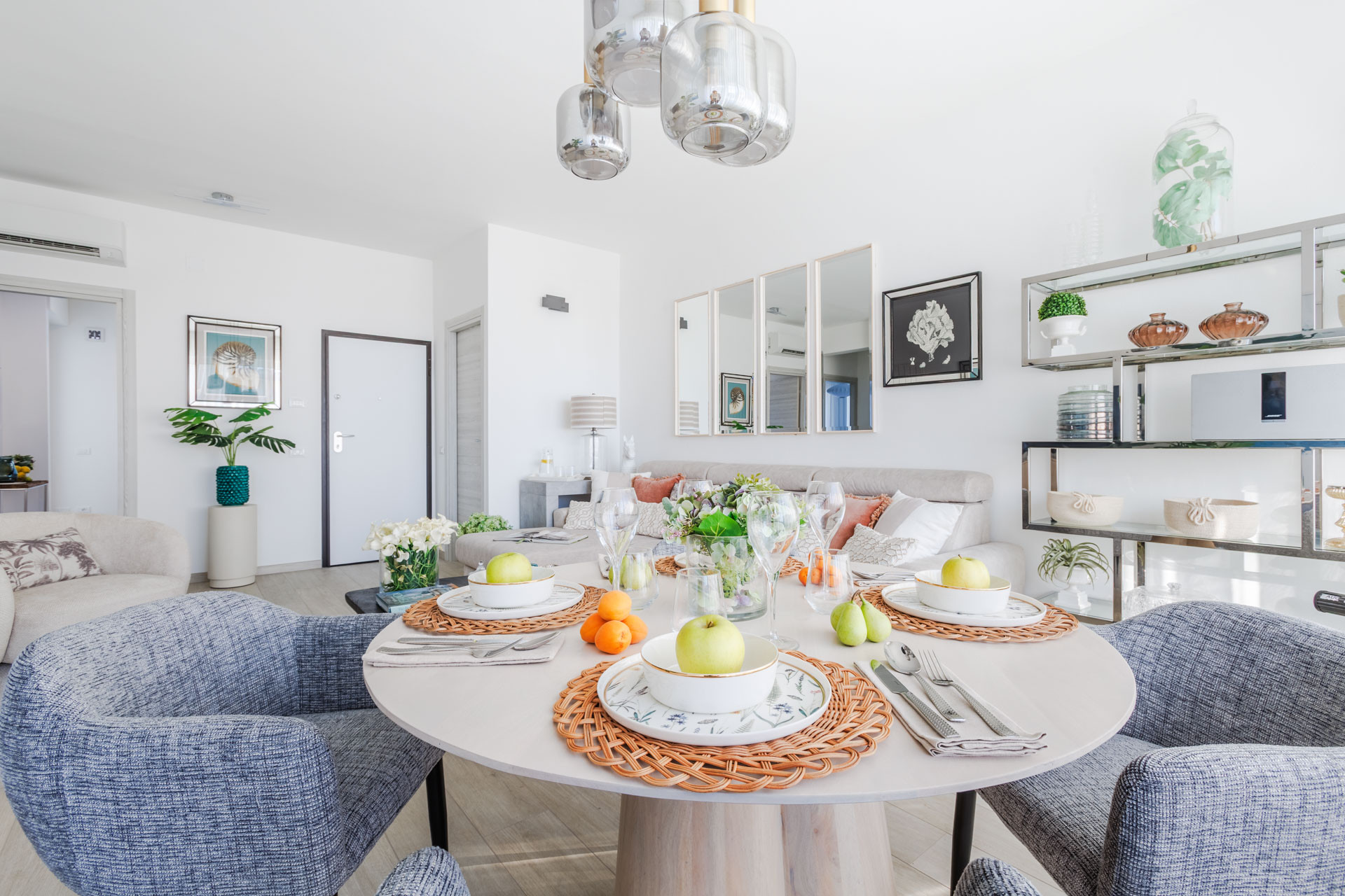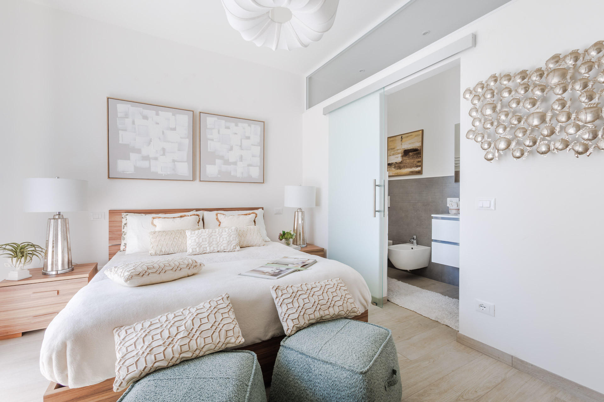 The spacious living area opens onto a beautifully furnished terrace, ideal for enjoying an al fresco breakfast or a glass of wine at sunset.