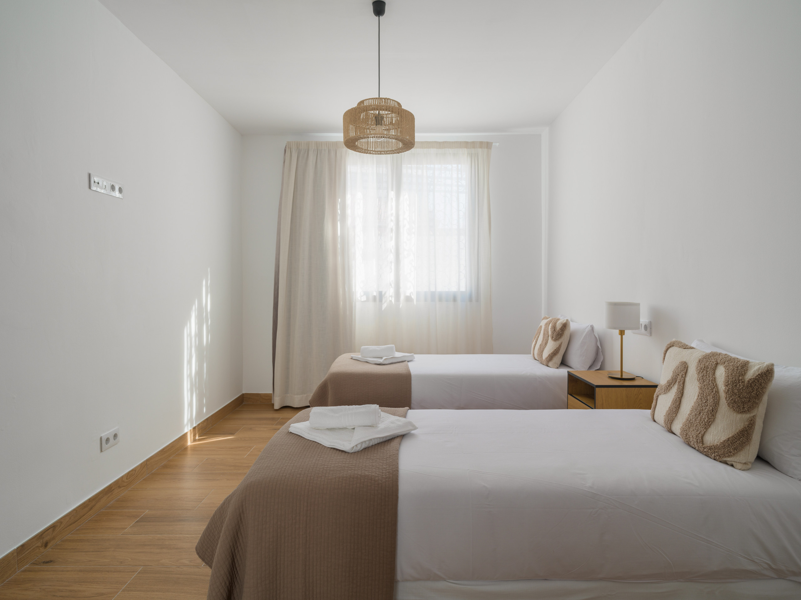 Second bedroom with two single beds and a separate walk-in wardrobe.
