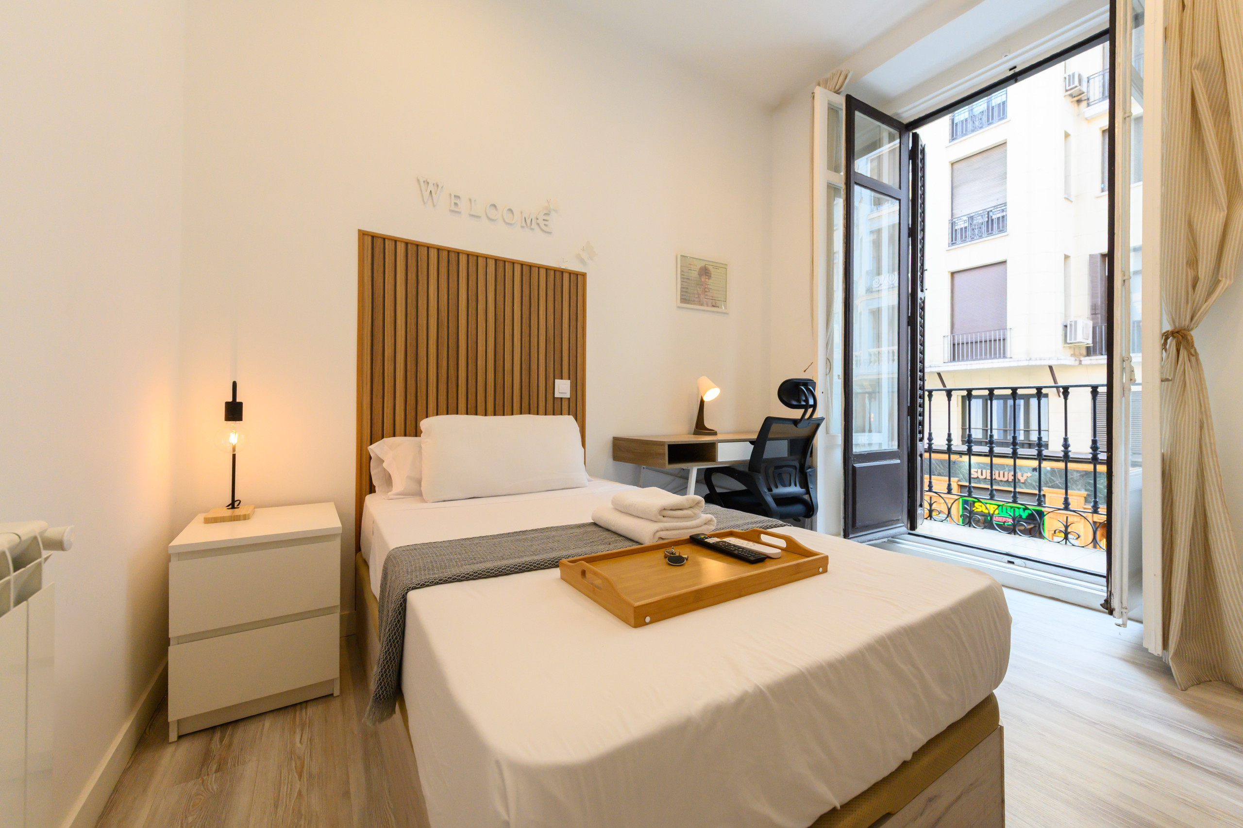 Temporary Rental Flat. The San Bernardo property is strategically located in the city centre, between Callao and Plaza España. Next to Madrid's Gran Vía, this modern and functional shared flat is ideal for those seeking comfort and privacy in an international environment.