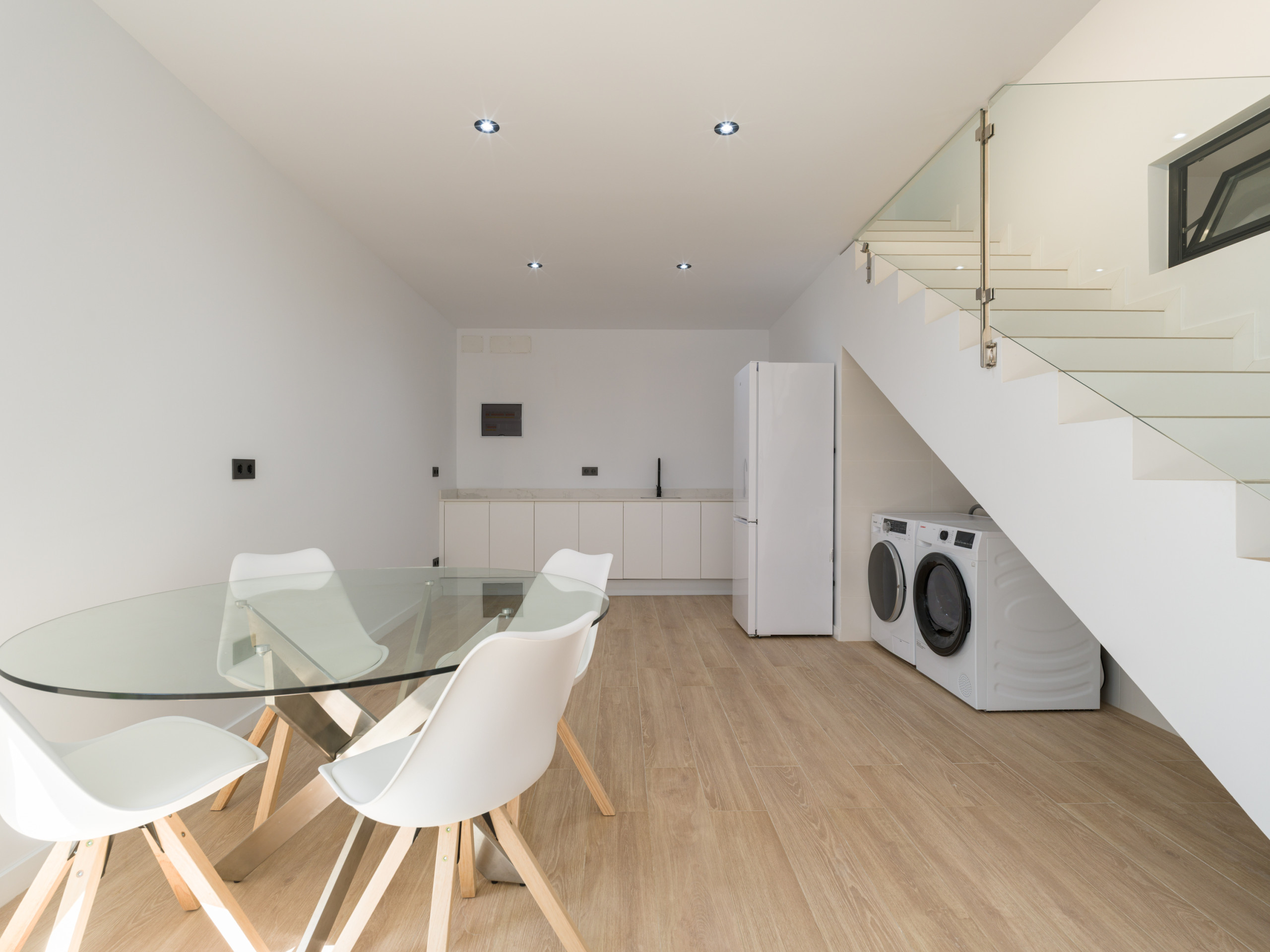 On the ground floor there is a living room, with an office and two bedrooms with their own bathroom.