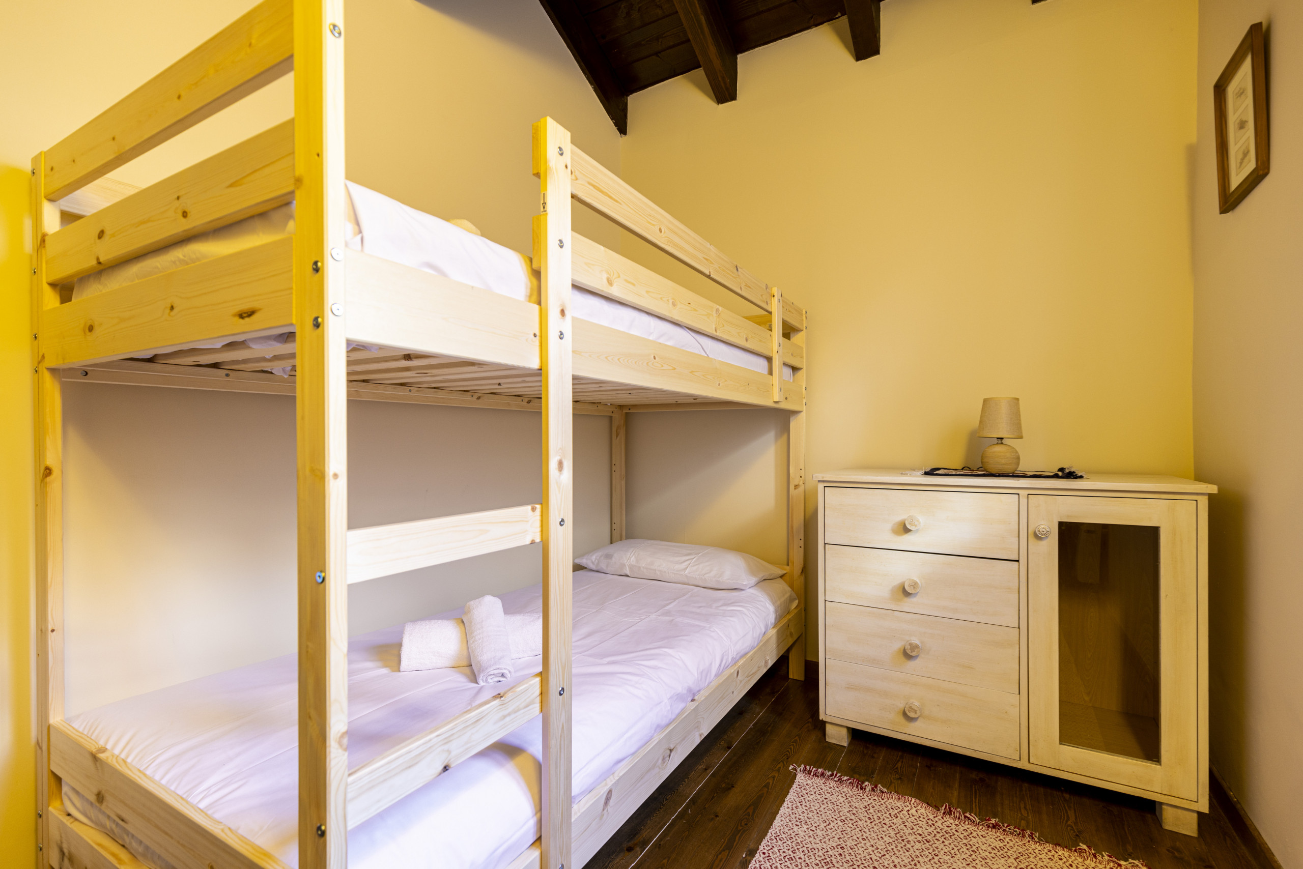 On the first floor there are 3 bedrooms, two of them with a double bed and one with bunk beds. It also has two full bathrooms, one with a bathtub and the other with a shower.