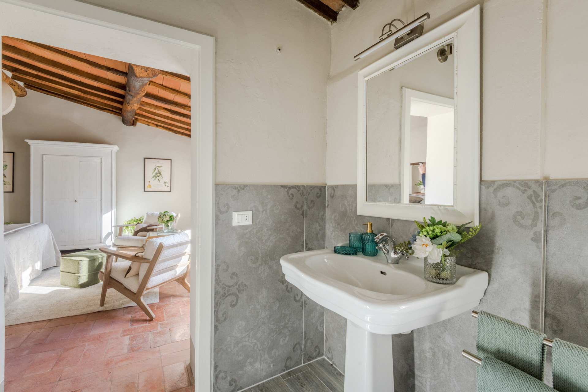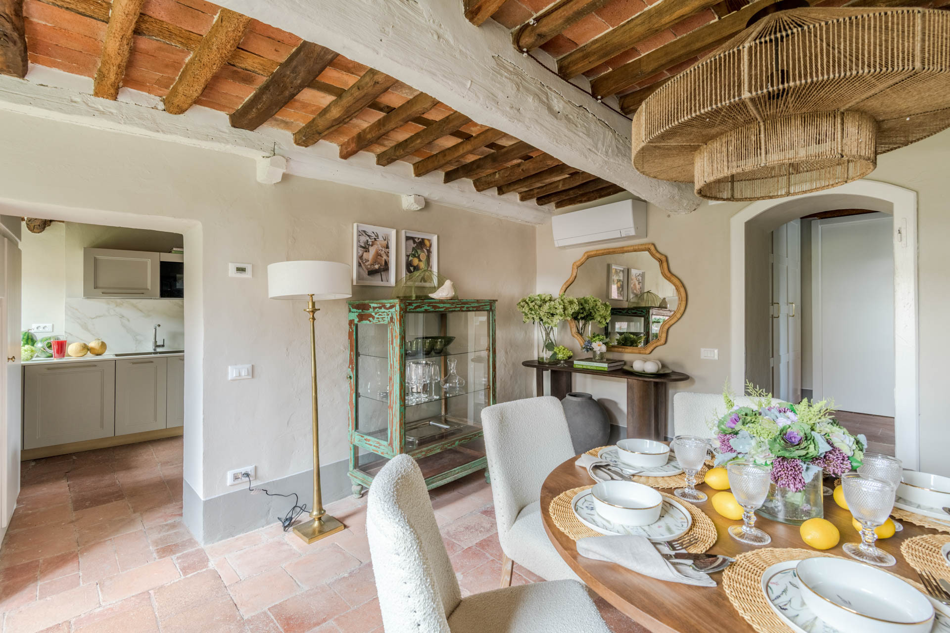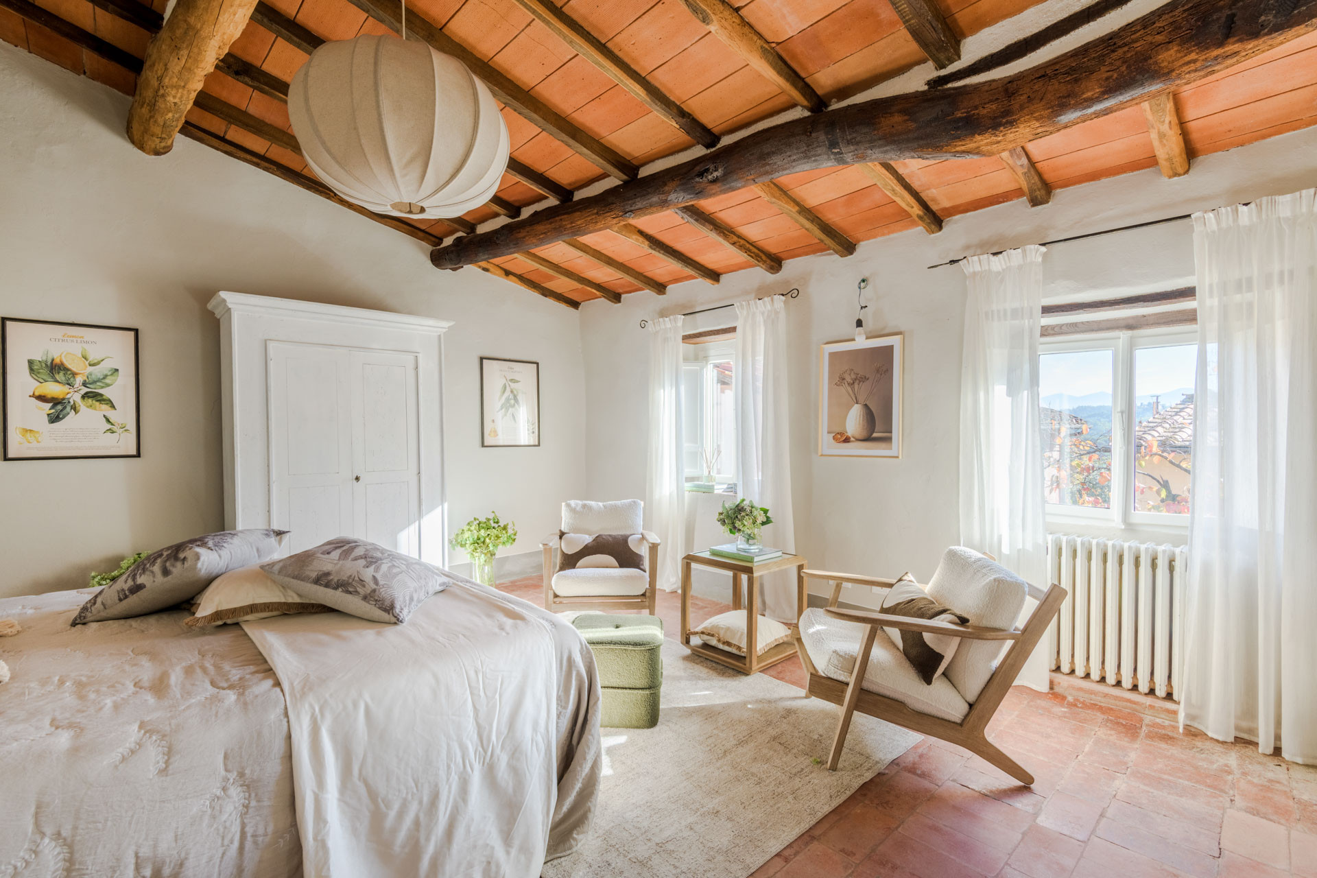 The cottage is nestled within a tiny, authentic hamlet where real Tuscan life still unfolds. Here, you’ll witness olive harvests by hand, old women tending their vegetable gardens with quiet devotion, and a wise old man strolling the lanes with his loyal dog, always wandering and looking for a gentle cuddle from the inhabitants of the hamlet. Life moves at a human pace, guided by tradition, seasons, and simple pleasures.