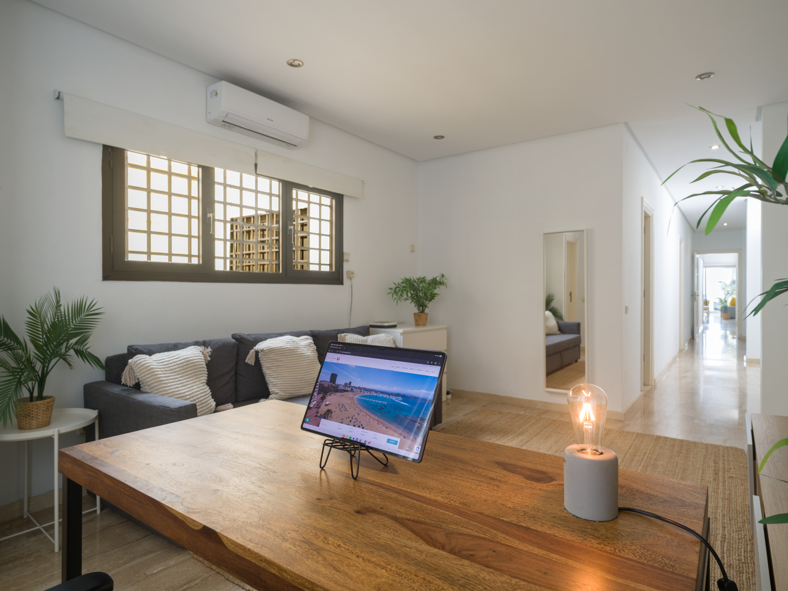 Amazing huge apartment, directly at the beach! Very clean and all you need included (fridge, dryer, washing machine, dish washer etc.!) You fall out of the door and you're at the promenade with many good bars and restaurants. Supermarkets are around the corner, literally! Communication was easy. Lots of transport (bus stations) around, if yougo pu lic. Big 24h parking in 100m if you come by car. Had a small problem with the shower (hose was broken), was fixed immediately. Would definitely come back... if I had more annual leave! Can recommend it...