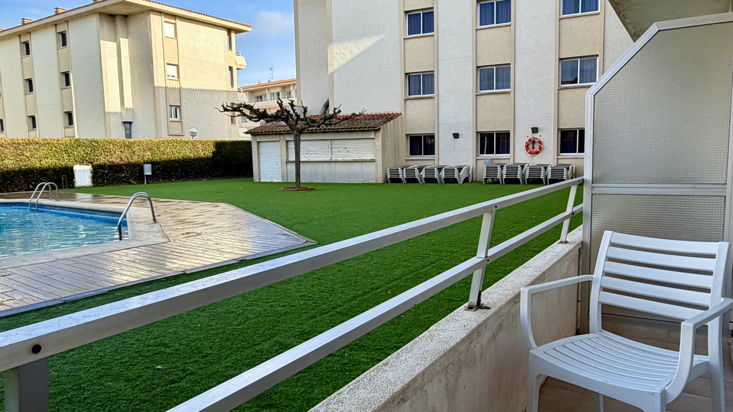 Boendet är utrustat med följande föremål: terrass, tvättmaskin, strykjärn, luftkonditionering, gemensam pool och barnpool, 1 TV.