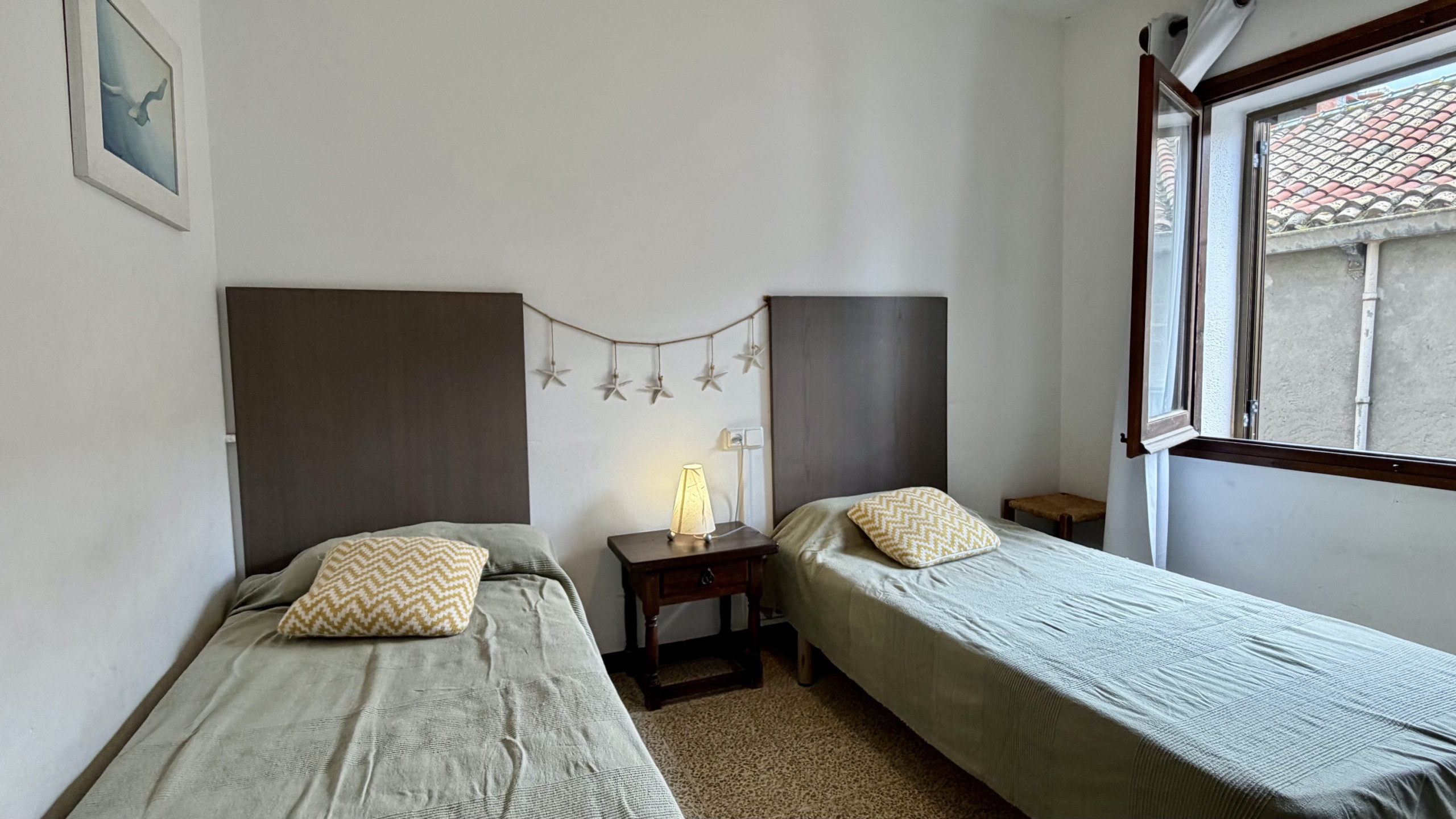 L'armari de l'habitació on hi ha el llit doble fa molta olor d'humitat. S'hauria de netejar la roba de llit que hi ha dins i posar alguna solució per la humitat. No s'hi pot deixar la roba.