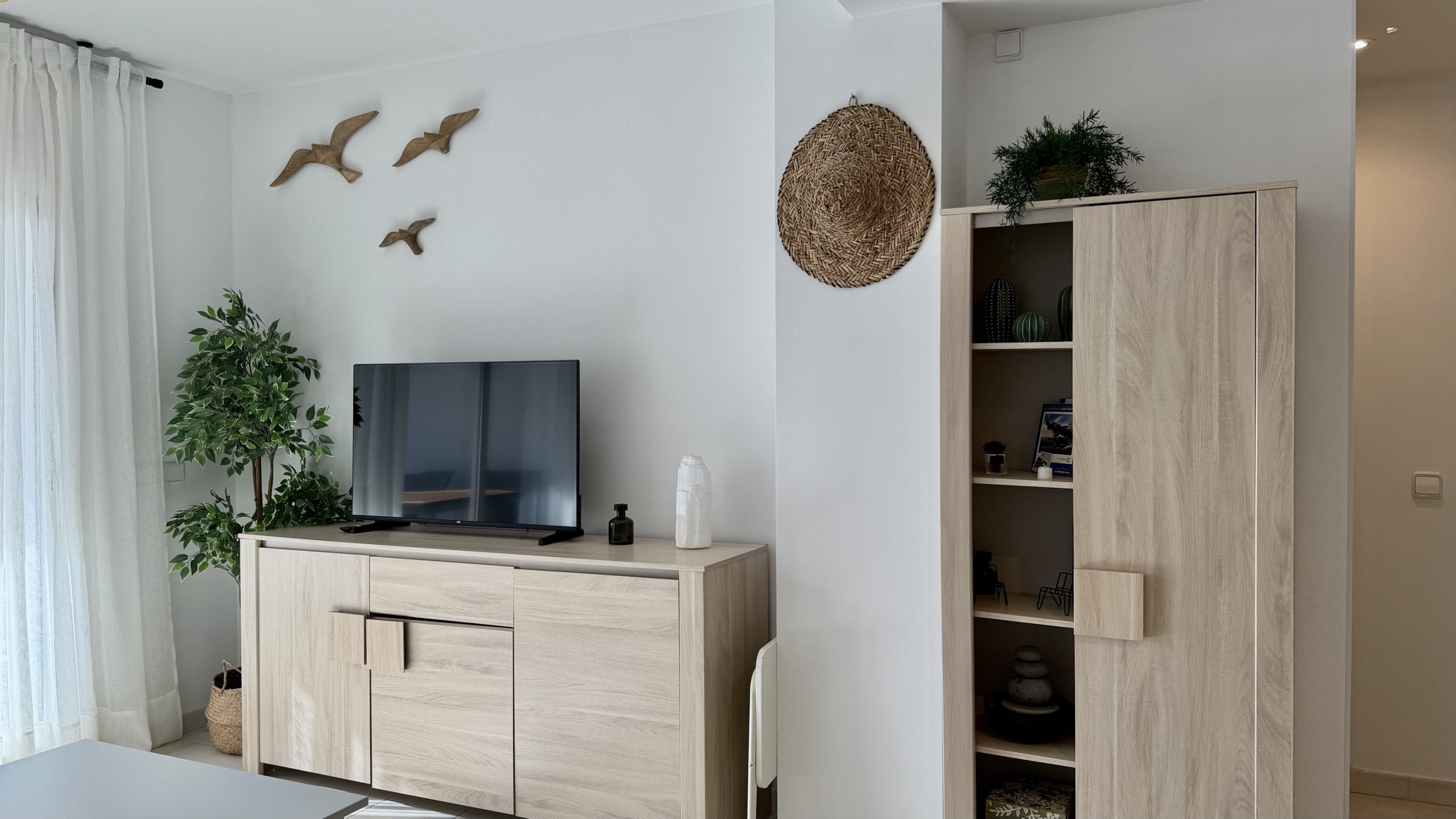 Boendet är utrustat med följande föremål: hiss, terrass, tvättmaskin, strykjärn, internet (Wifi), gemensam pool och barnpool, Övertäckt pakeringsplats in på plats, 1 fläkt, 1 TV.